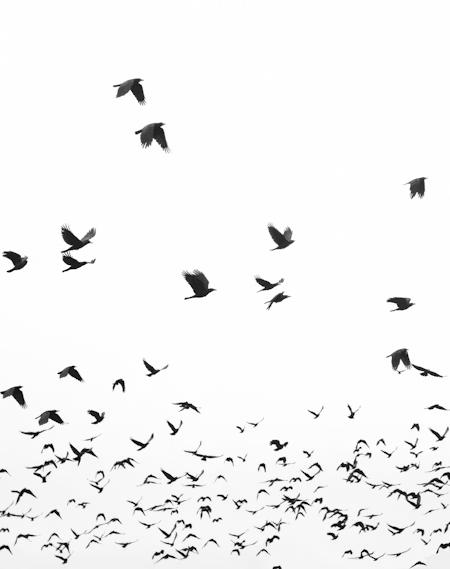 Town-lands of the heart crumble into dust, search clear skies, track the aftermath as flocks of starlings’ flight formations must.