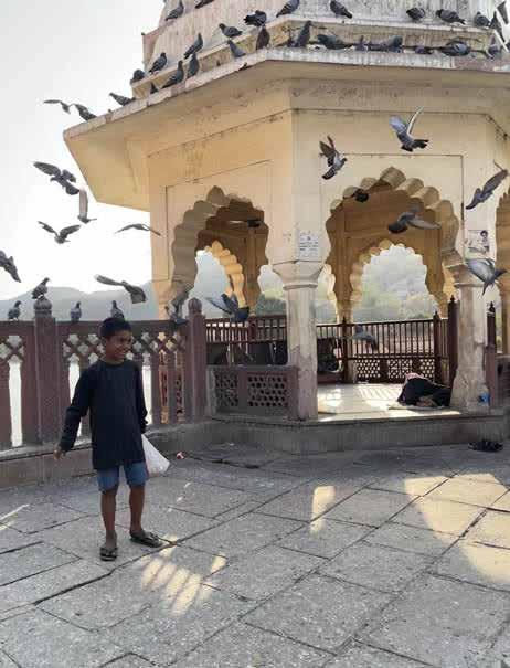 At Jaipur’s glorious Amer Fort, there is a special pagoda at the side of the lake where the pigeons gather to enjoy the free food offered to them by the faithful. It’s a daily event which takes place just before sunset.