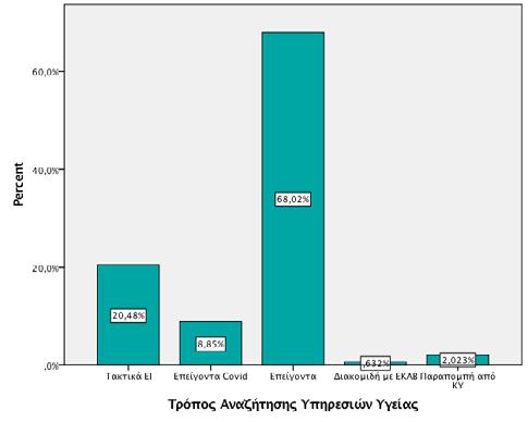 Περίληψη Εισαγωγή: Από τον Οκτώβριο 2018, η φροντίδα της υγείας των εφήβων ηλικίας 14-16 ετών στην Ελλάδα, ανατέθηκε στον Ειδικό Παιδίατρο. Σκοπός: Η καταγραφή στοιχείων νοσηρότητας εφήβων ηλικίας 14-16 ετών που αναζήτησαν υπηρεσίες υγείας από Δευτεροβάθμιο Νοσοκομείο την τριετία 2018-2021. Υλικό - Μέθοδος: Μελετήθηκαν αναδρομικά, τα αρχεία των Εξωτερικών Ιατρείων (Τακτικών & Επειγόντων) της Παιδιατρικής Κλινικής Δευτεροβάθμιο Νοσοκομείο, την προαναφερόμενη περίοδο. Αποτελέσματα: Την μελετούμενη περίοδο, 791 έφηβοι (48.4% αγόρια) ηλικίας 14.81±0.6 ετών, αναζήτησαν υπηρεσίες υγείας. Η πλειονότητα των εφήβων διέμεναν σε πόλη (63.8%), ενώ 5.1% αφορούσε έφηβους-πρόσφυγες. Ποσοστό 76% (n=608/791) προσήλθε στα Τμήματα Επειγόντων ενώ μόλις 20.5% έφηβοι (n=162/791) προσήλθαν μετά από ραντεβού σε Τακτικό Ιατρείο ενώ 2.6% (n=21/791) παραπέμφθηκαν από Α/βαθμια δομή υγείας. Η συχνότερη αιτία αναζήτησης ιατρικής φροντίδας ήταν η συμπτωματολογία λοίμωξης από το αναπνευστικό (30.4%), ενώ λιγότερο συχνά αίτια ήταν η κοιλιαλγία (9.5%), ο πυρετός (7.3%) και οι αλλεργικές αντιδράσεις (5.6%). Μεταξύ των εφήβων που προσήλθαν σε Τακτικό Ιατρείο η συχνότερη αιτία προσέλευσης ήταν η έκδοση δελτίου υγείας. Εισαγωγή στην Παιδιατρική Κλινική συστήθηκε στο 11.5% των εφήβων που εξετάστηκαν. Συχνότερη αιτία νοσηλείας ήταν το προλιποθυμικό επεισόδιο (19.7%) ενώ ακολούθησαν η μέθη (11.3%), η λοίμωξη γαστρεντερικού (11.3%) και η θωρακαλγία (9.9%). Η μέση διάρκεια νοσηλείας ήταν 2.8±1 ημέρες. Συμπεράσματα: Οι έφηβοι 14-16 ετών αναζητούν στην πλειονότητά