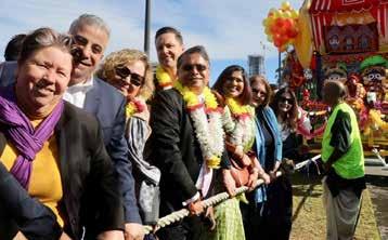 Liverpool councillors, from left, Karress Rhodes, Richard Ammoun, Fiona Macnaught, Nathan Hagarty (second row) Charishma Kaliyanda and Betty Green at the at the Festival of Chariots.