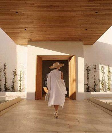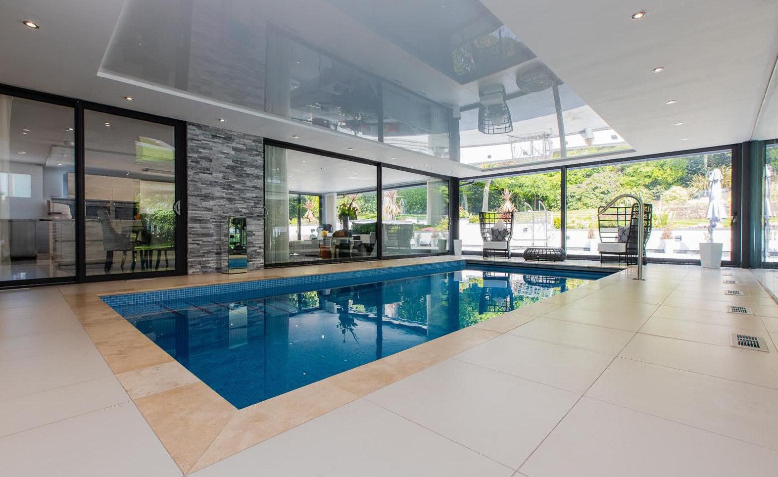 Glass sliding doors from the pool open onto the sunny terrace and allow the sunlight to come inside the indoor pool all day.