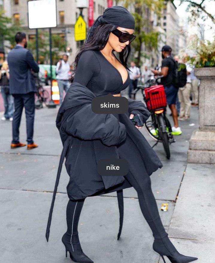 - Bonded Waisted Leggings: Keep everything smooth with a flat waistband and side darted to contour your shape. Made from beautiful silky fabric, these leggings are a £116 limited edition. Skims’ collaboration with Nike is a must-have. They’re so hot! Kim Kardashian has been spotted wearing them all day, and they’re made from the most amazing fabric with the built-in underwear look.