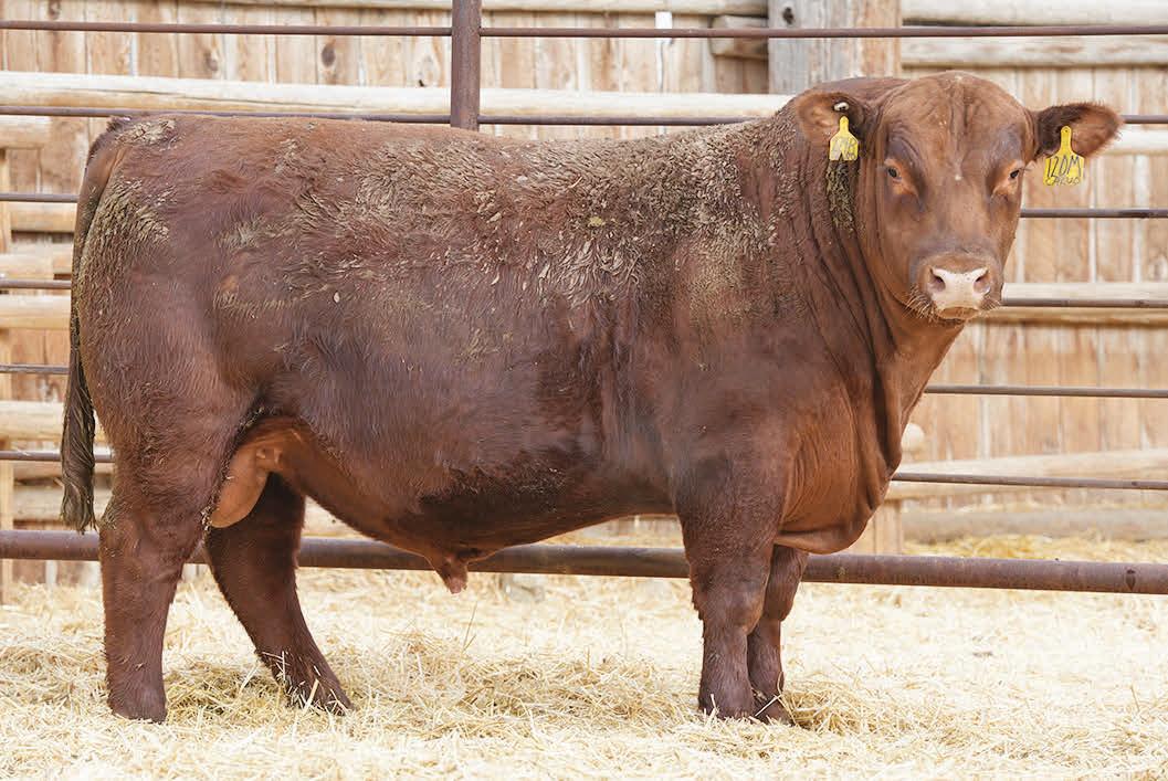 "Foreman is the culmination of over two decades of combining the best that Black and Red Angus had to offer. He is the logical and profitable next step. He combines exceptional spread with best 8% calving ease and heaviest 7% yearling and 6% ADG; and packs that power in moderate, easy fleshing package" -–5L Red Angus Strategy 121J is one of the most linebred OCC Emblazon 854E bulls in the Red Angus breed, and that uniformity of type and kind is on full display in the Strategy sons offered. Strategy himself posts a 31 PAP.