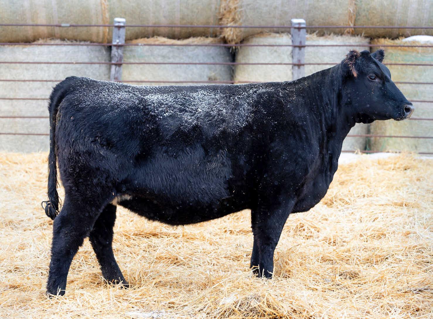 A bred heifer that is deep sided and has a wide hip. She is out of the Dora Cow Family that has done excellent. This heifer’s dam raised this calf as a heifer then bred back and had twin bulls, and they are both in my bull sale. She is quiet and carries a +307 $C, and ribeye EPD in the top 10%. She was AI’d to Millars Duke 816 on 6-11-2025. Ultrasounded and due approximately 3-20-2026 to Duke.