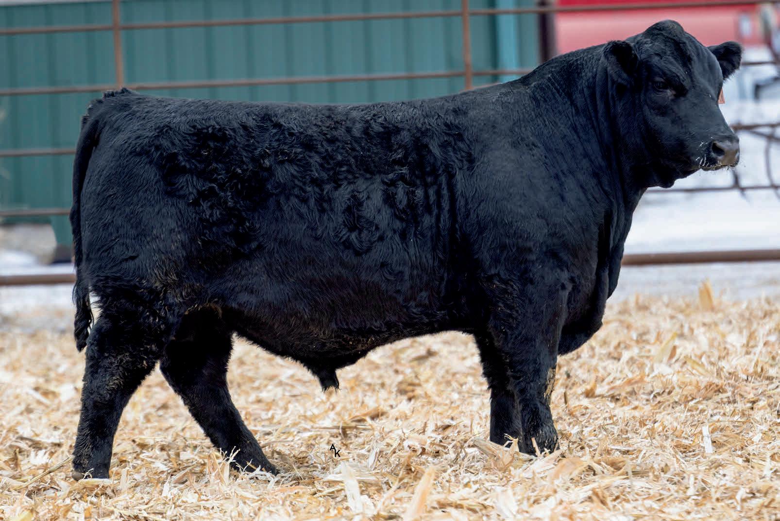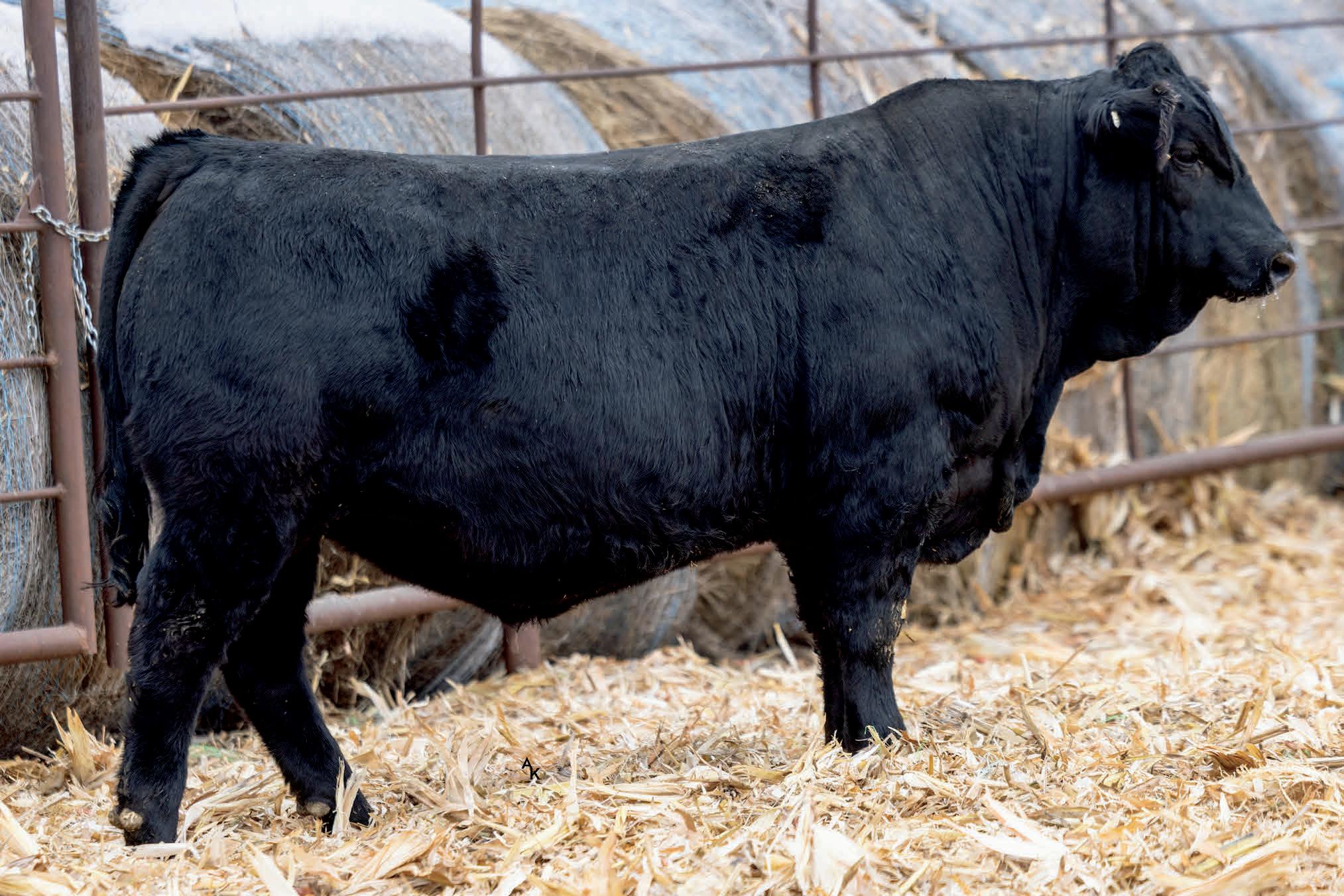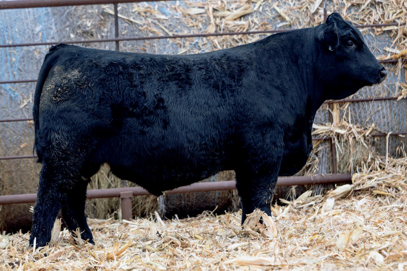 Homo/Polled Homo Blk. Plateau calf with some size and power to him. He’s big and stout and will generate some extra pounds in his calves. If you’re looking to increase frame, this guy will do that, and add thickness. You find this guy. Dams ratios BW 102 WW 102 YW 101