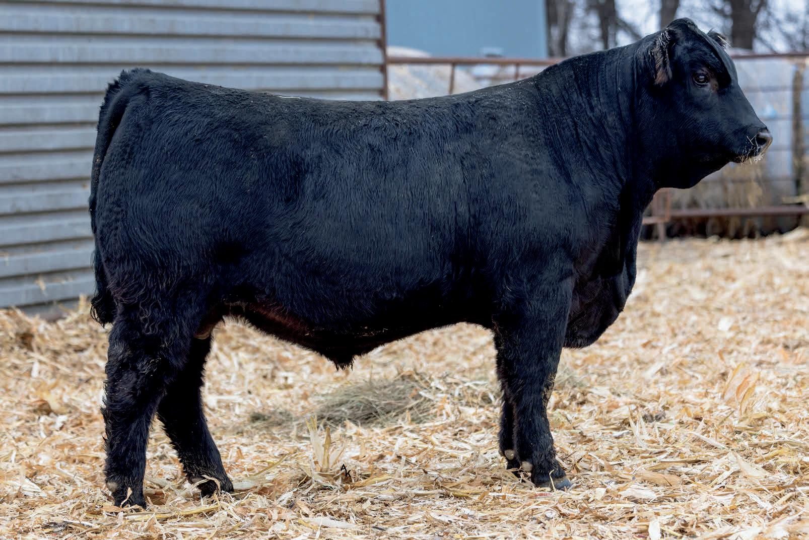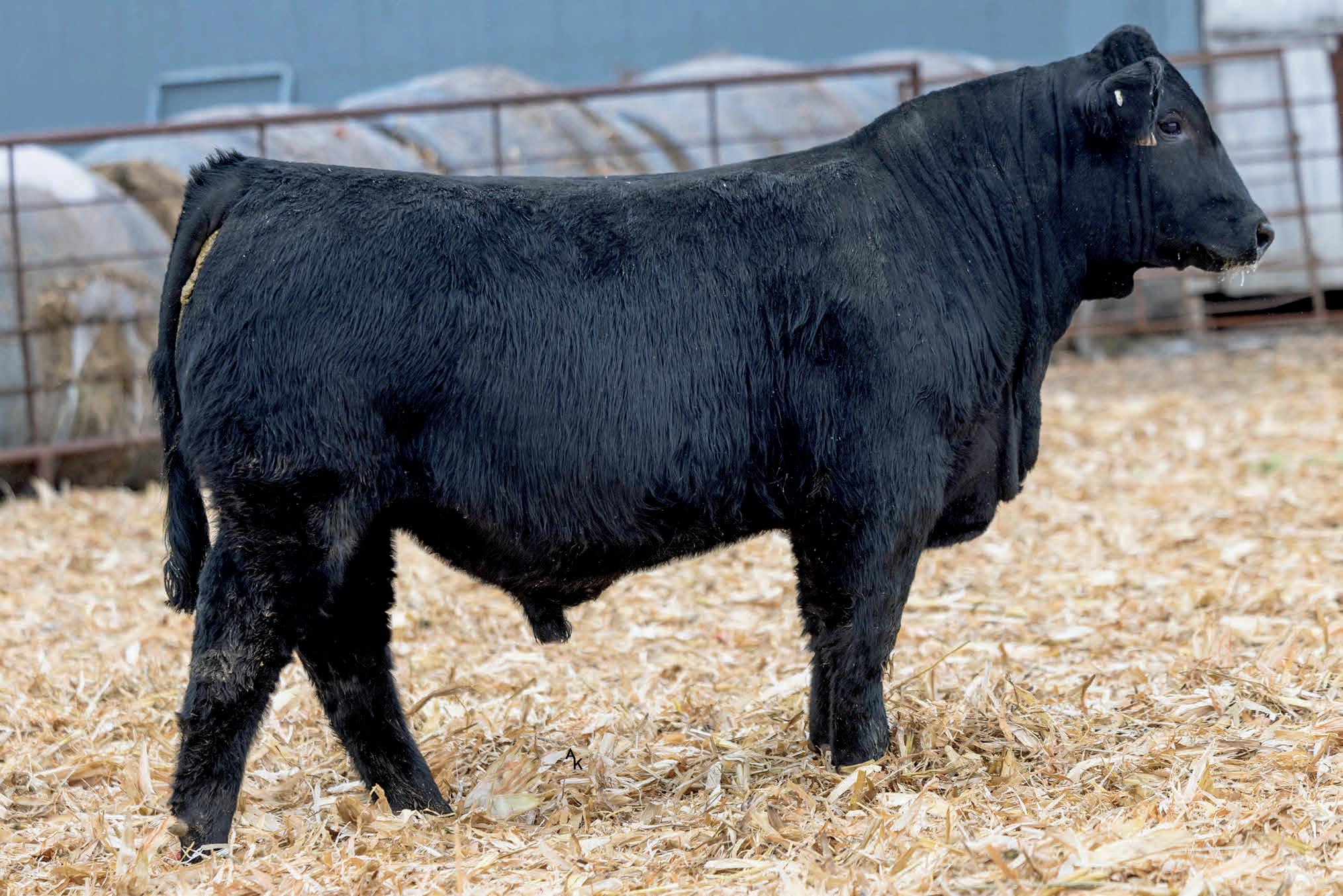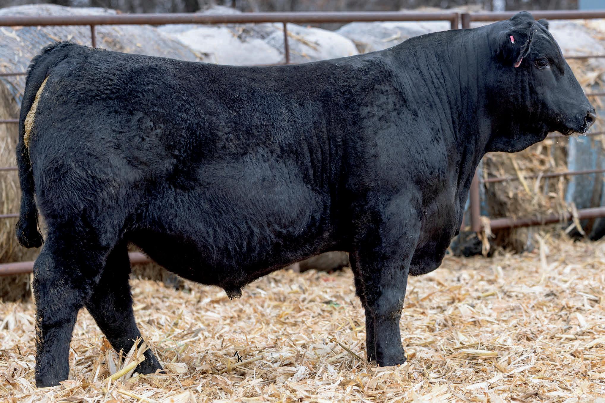 Homo/Polled Homo Blk. Plateau calf with some size and power to him. He’s big and stout and will generate some extra pounds in his calves. If you’re looking to increase frame, this guy will do that, and add thickness. You find this guy. Dams ratios BW 102 WW 102 YW 101