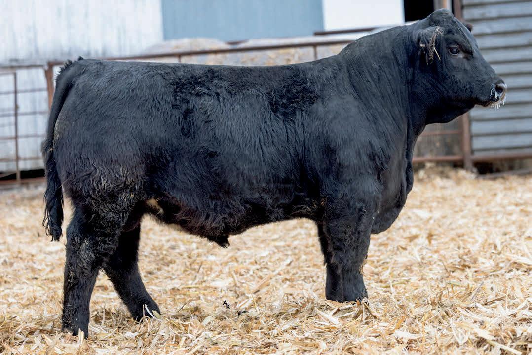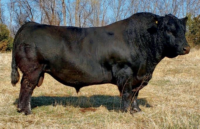 Homo/Polled Homo Blk. A KBHR Hartland out of a big Rode’s Power House cow. More frame and length of body, somewhat old school type. If your cows are getting too compact this guy could be the answer. Out of a first calf heifer with some size her ratios are BW 104 WW 98 (745 Adj)