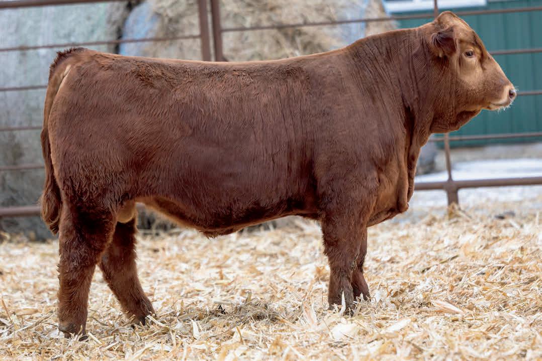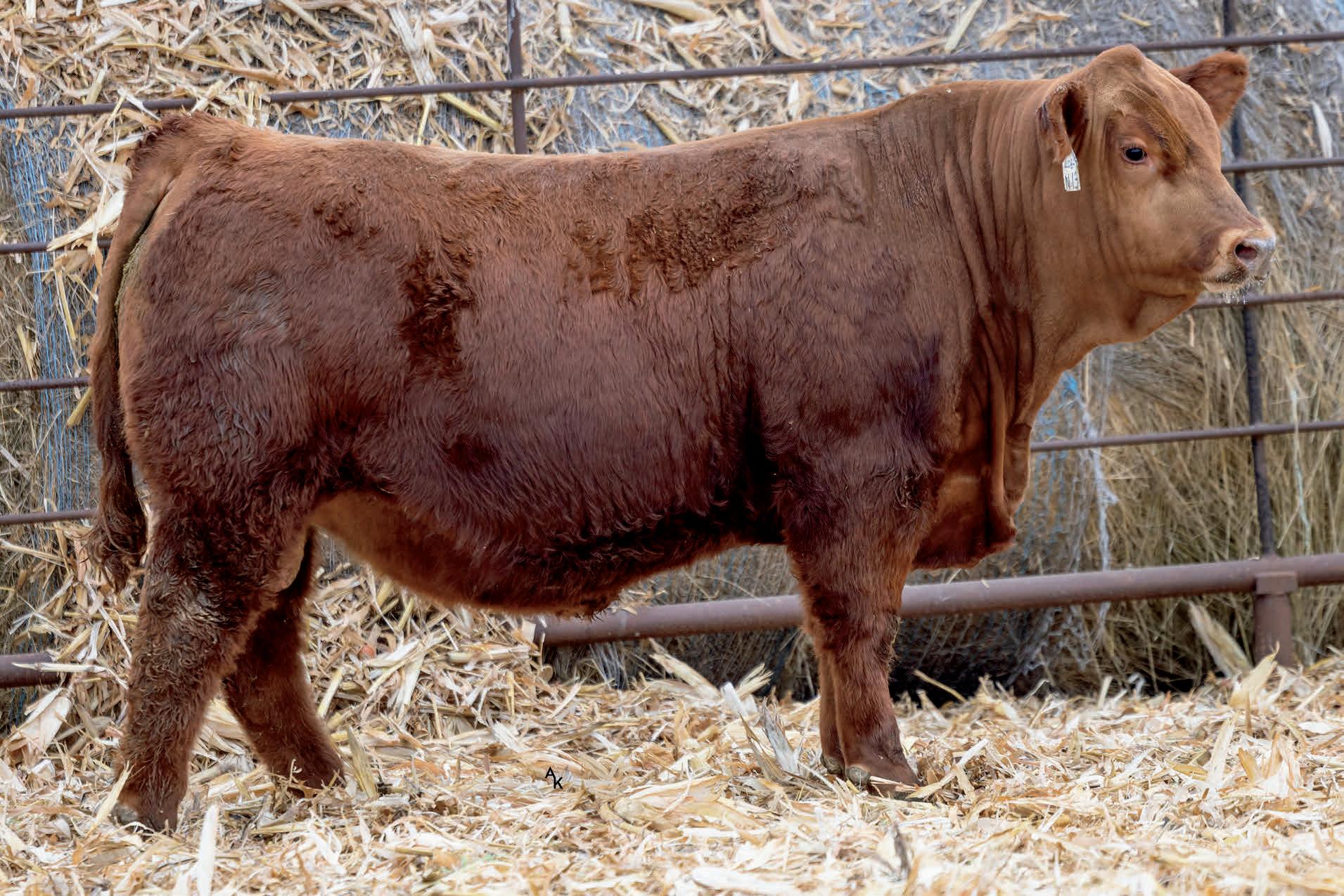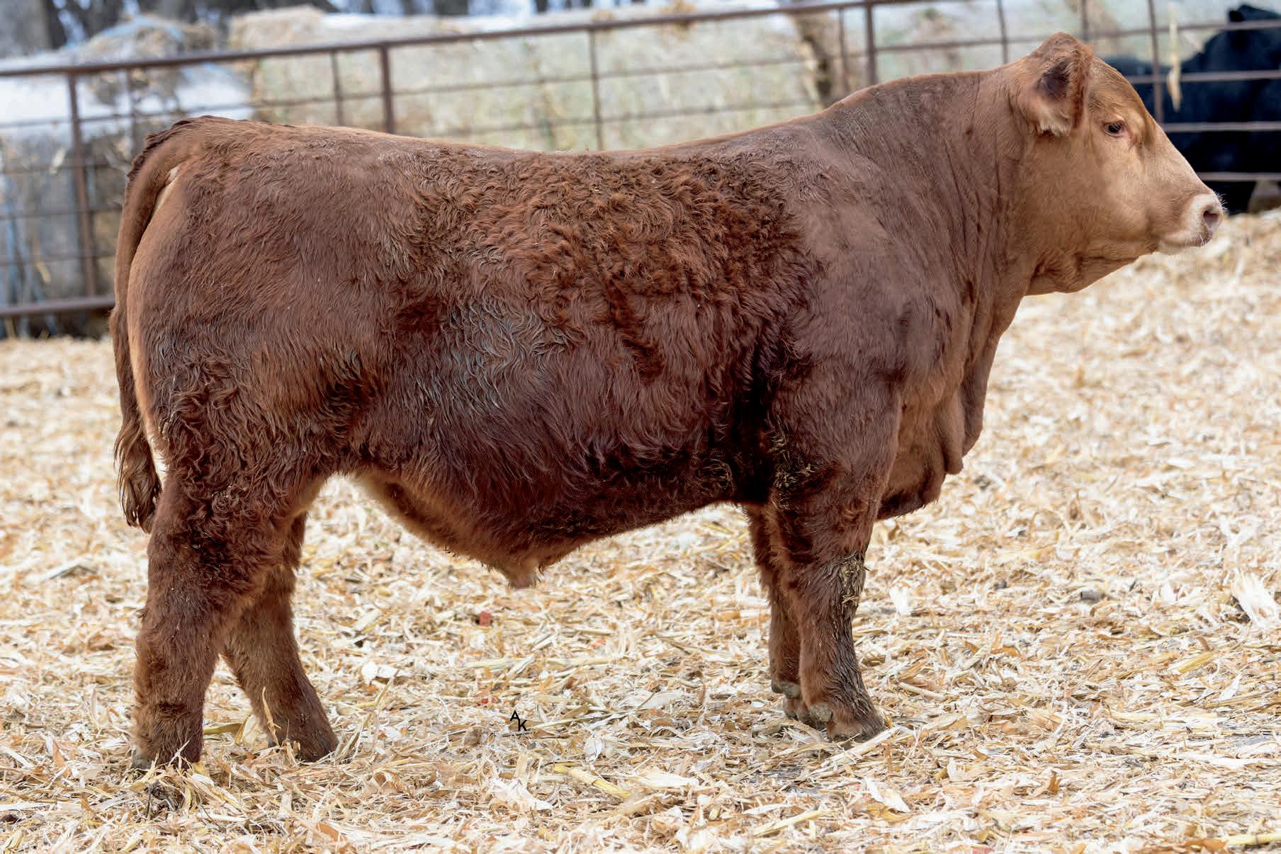 Homo Polled. One of the first ES Jack Red calves to sell this year and he’s good. His dam is a daughter to our famous Miss Traxs B479 who produced, Traxs Red River, Traxs Bulldog and several other bulls that went to purebred breeders. Dolls, 7N Simmental, Trautmann. Growth bull/ Herd bull. Heifers Ratio BW 97 WW 113 (860 adj).