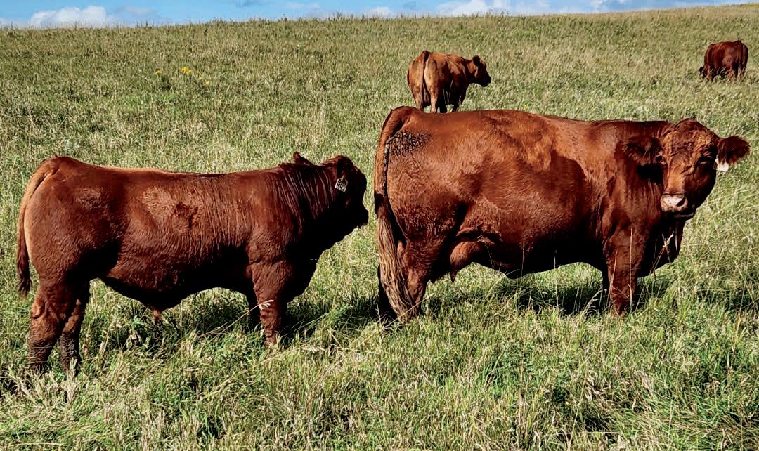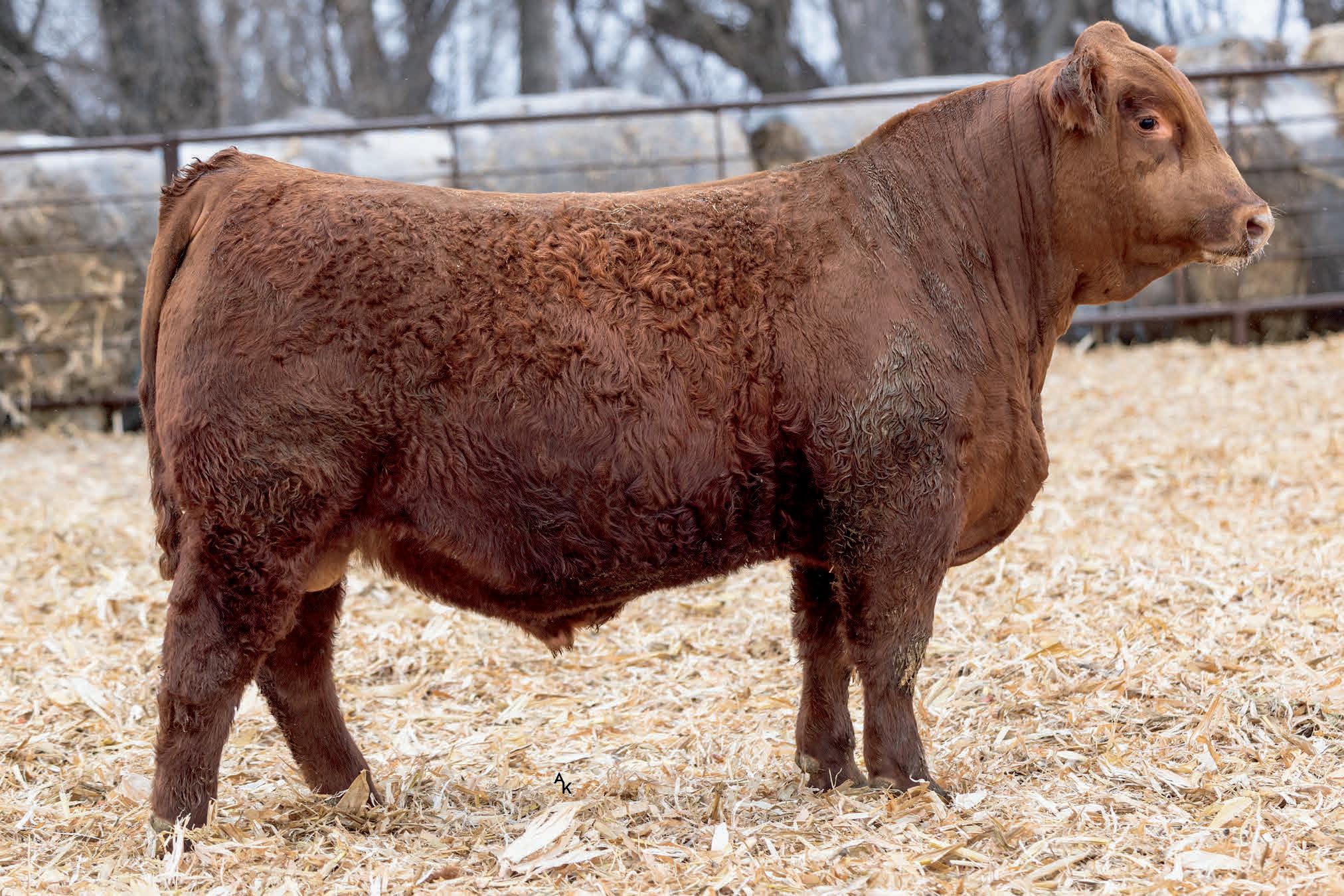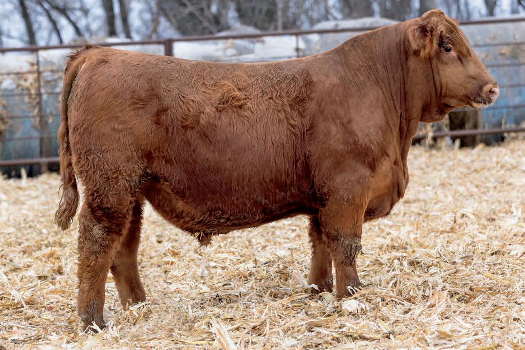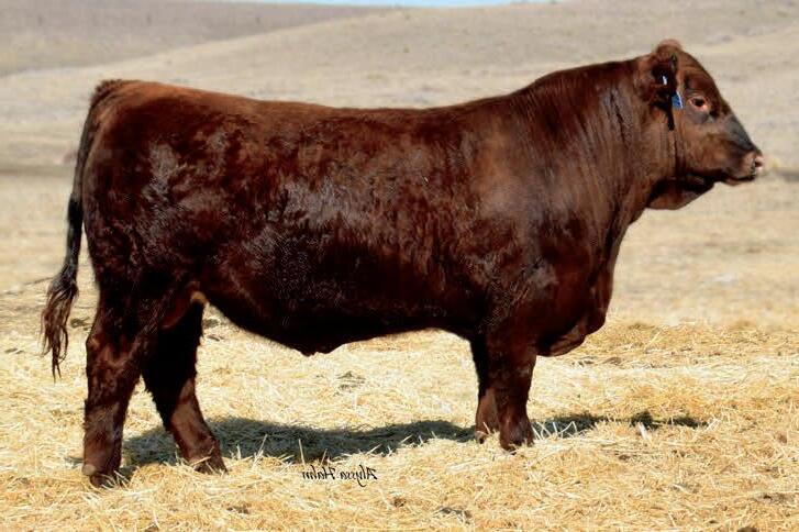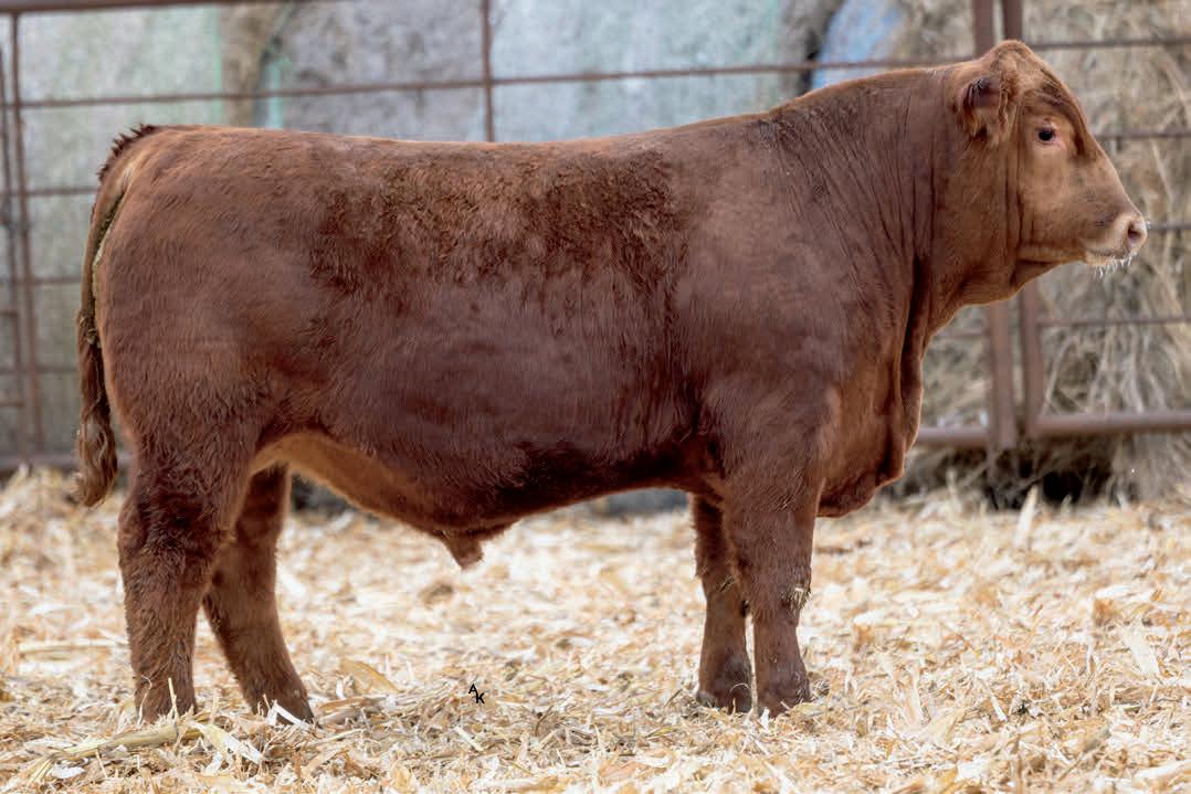 Homo Polled. One of the first ES Jack Red calves to sell this year and he’s good. His dam is a daughter to our famous Miss Traxs B479 who produced, Traxs Red River, Traxs Bulldog and several other bulls that went to purebred breeders. Dolls, 7N Simmental, Trautmann. Growth bull/ Herd bull. Heifers Ratio BW 97 WW 113 (860 adj).