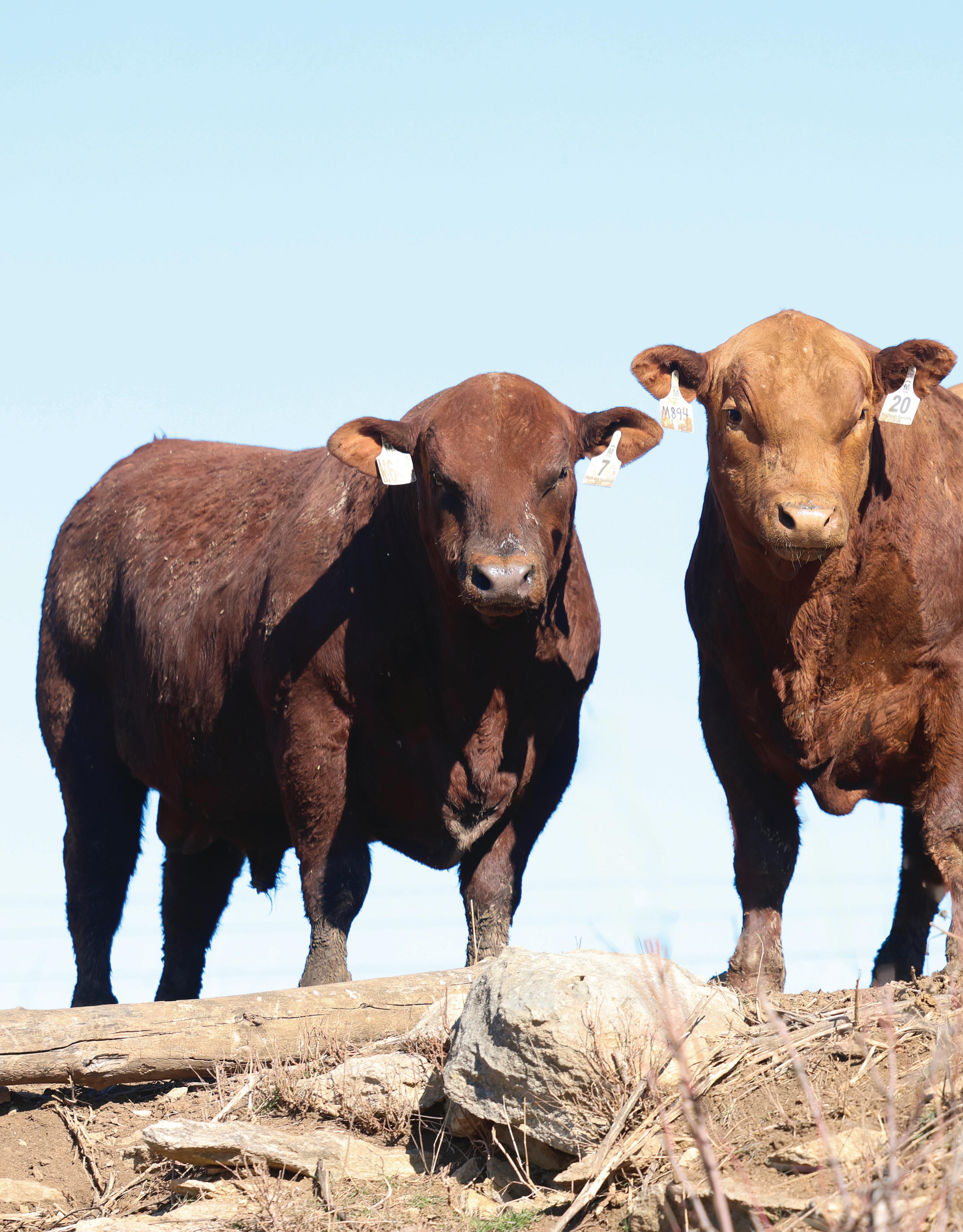 Herd health is excellent. All bulls been vaccinated with modified live IBR, BVD-PI3, BRSV and 7-way and have tested negative for BVD-PI. They were boosted with Cattlemaster Gold FP5 in February. All bulls have passed a BSE and semen evaluation. Heifer vaccination information can be found on the supplement sheet on our website at www.mushrushranches.com.