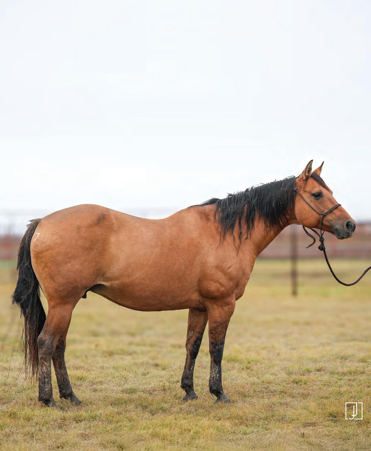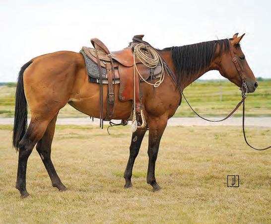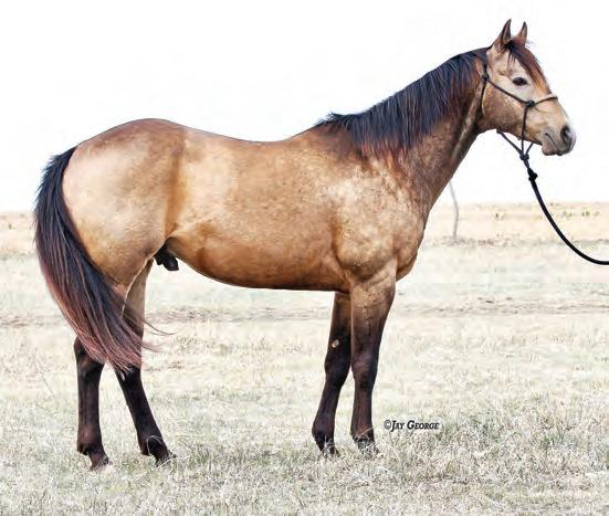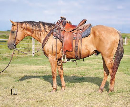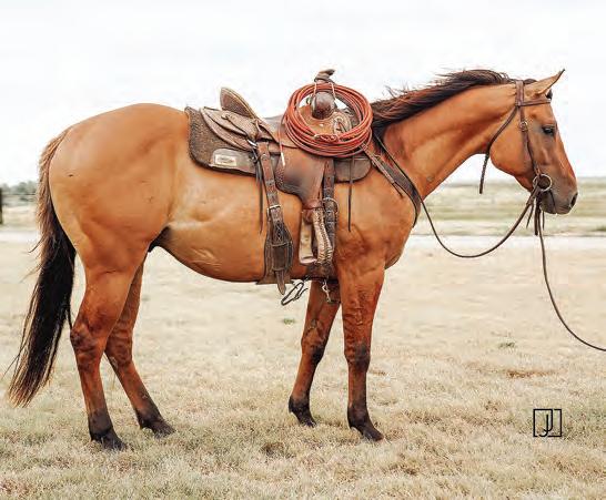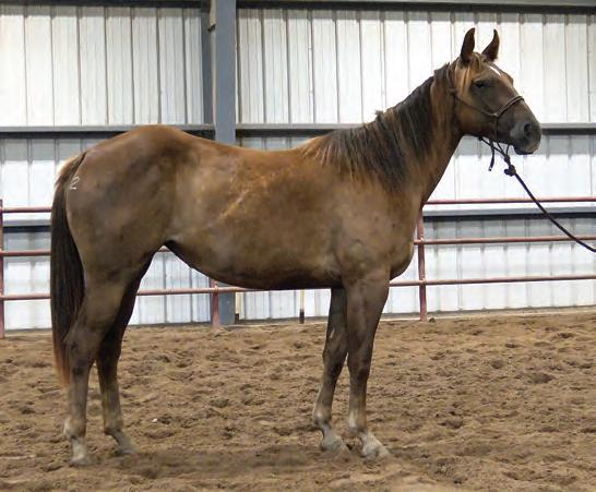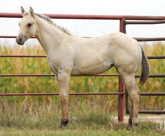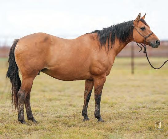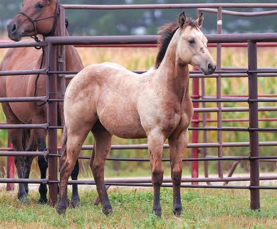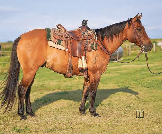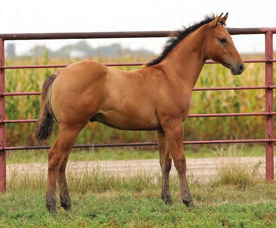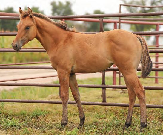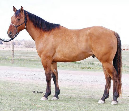 Not many Frost Em Peppy daughters of this caliber have been offered for sale. This dun mare is a proven producer and is right in the prime of life. Being broke to ride and good to handle is just the icing on the cake. Attractively built, with good foot and bone and lots of volume, she has all the tools to anchor a program. Sells safe in foal to Famous Sniper. Talk to Jason Newcomb 573/429-8611.