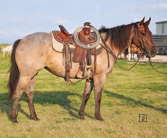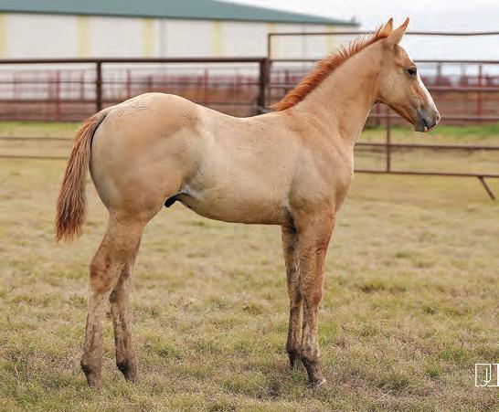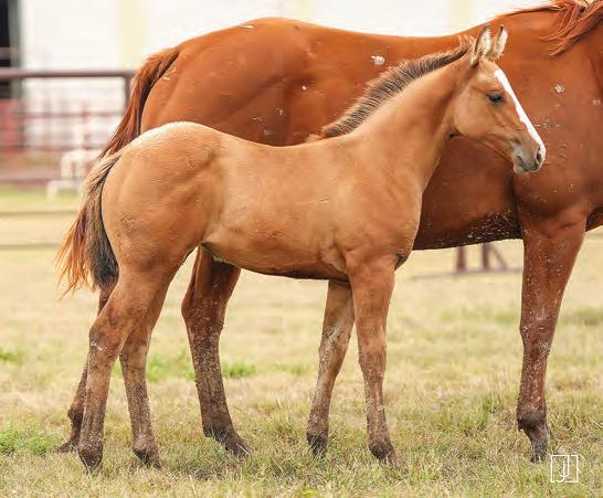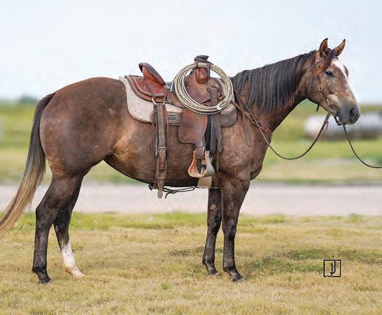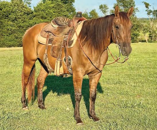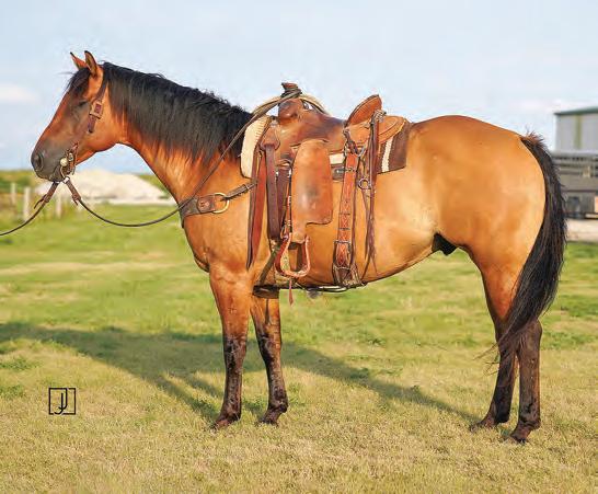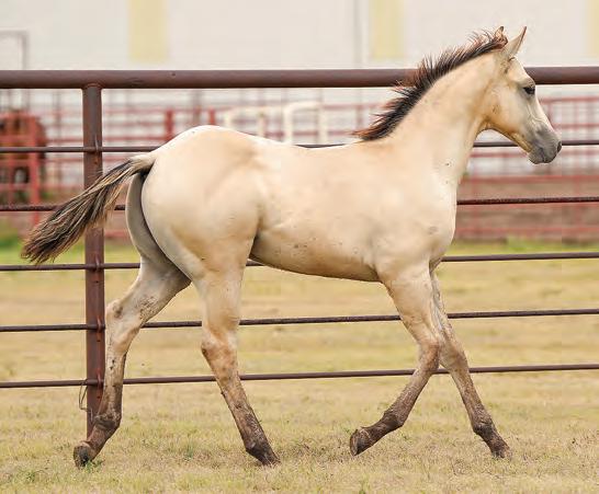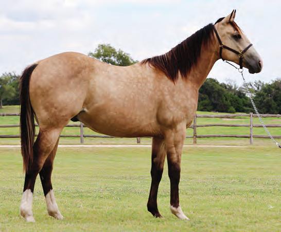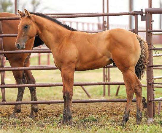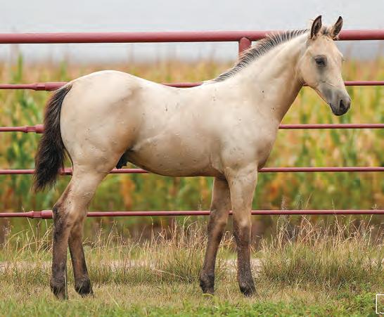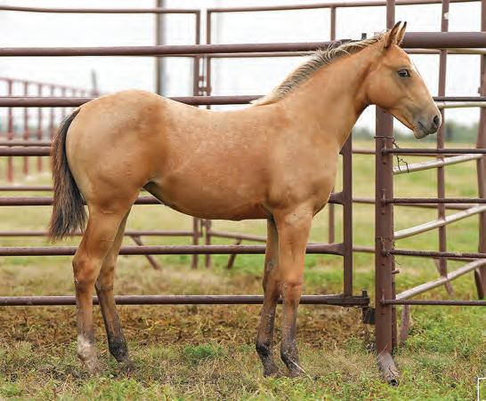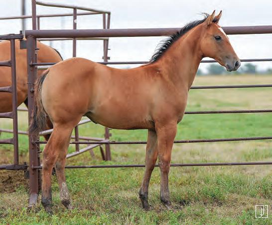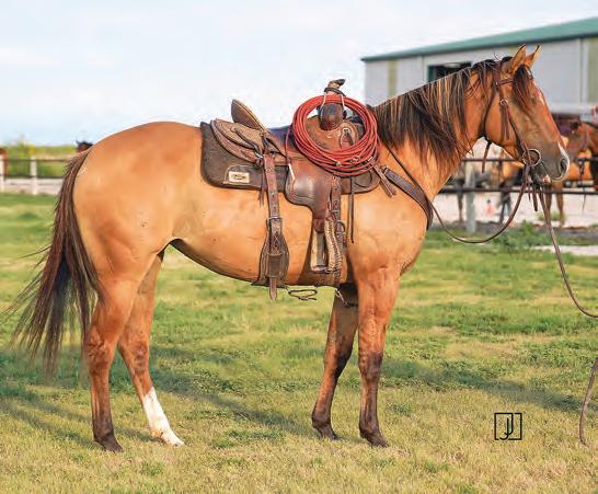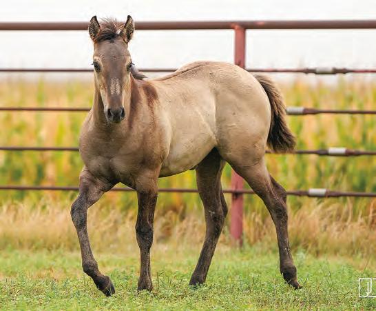 Not many Frost Em Peppy daughters of this caliber have been offered for sale. This dun mare is a proven producer and is right in the prime of life. Being broke to ride and good to handle is just the icing on the cake. Attractively built, with good foot and bone and lots of volume, she has all the tools to anchor a program. Sells safe in foal to Famous Sniper. Talk to Jason Newcomb 573/429-8611.