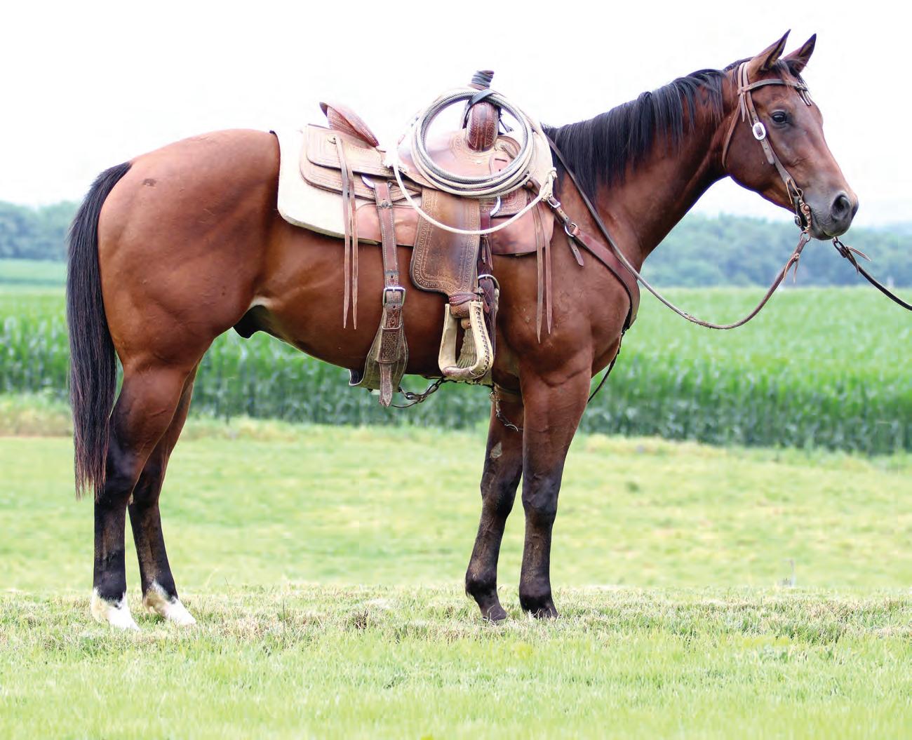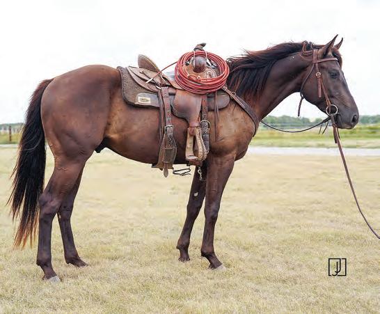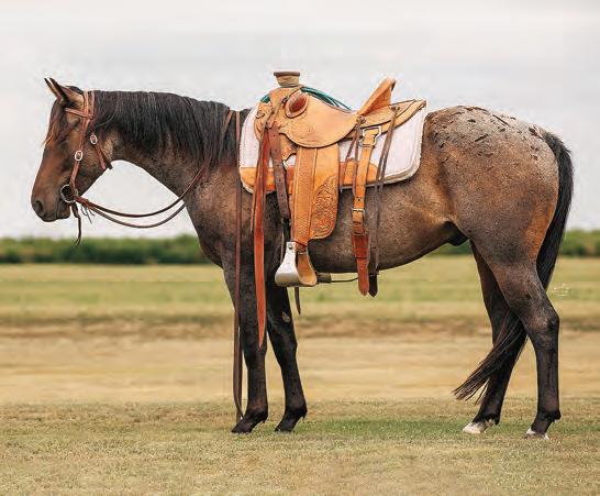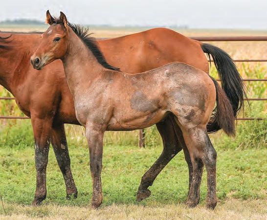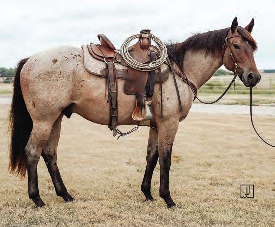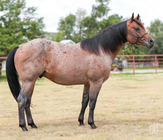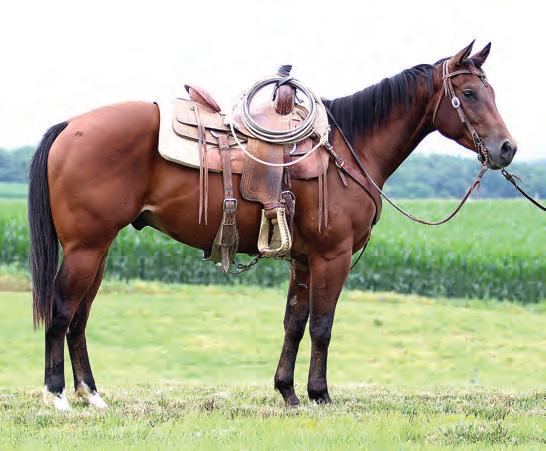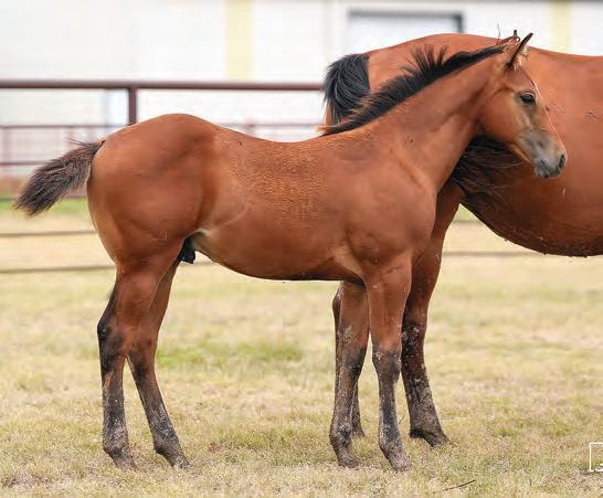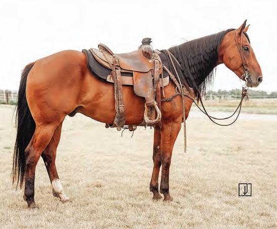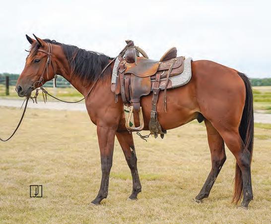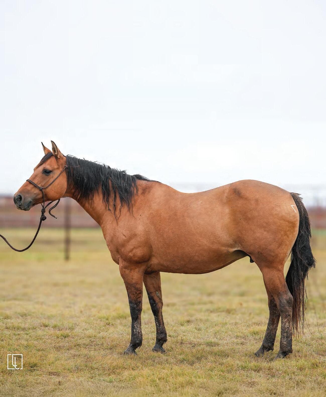Not many Frost Em Peppy daughters of this caliber have been offered for sale. This dun mare is a proven producer and is right in the prime of life. Being broke to ride and good to handle is just the icing on the cake. Attractively built, with good foot and bone and lots of volume, she has all the tools to anchor a program. Sells safe in foal to Famous Sniper. Talk to Jason Newcomb 573/429-8611.