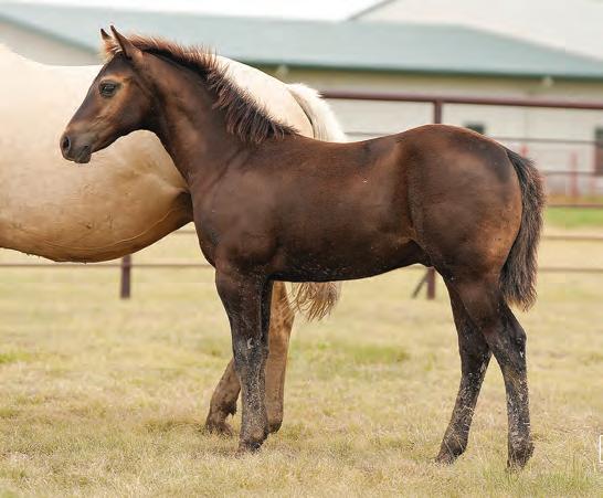 Very attractive dun mare that is easy to be around and a handy size. She rides well and has been a good producer for us. Her maternal side goes back to some of our proven foundation mares and her sire Special Drift needs no introduction. PE to PC Oakwood Frost.