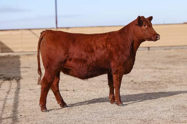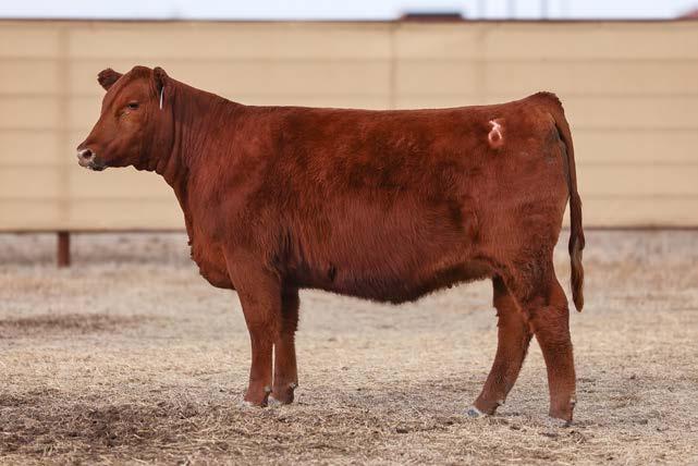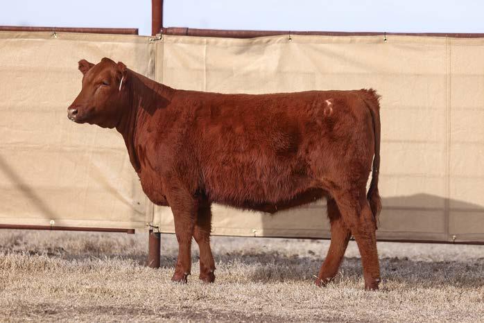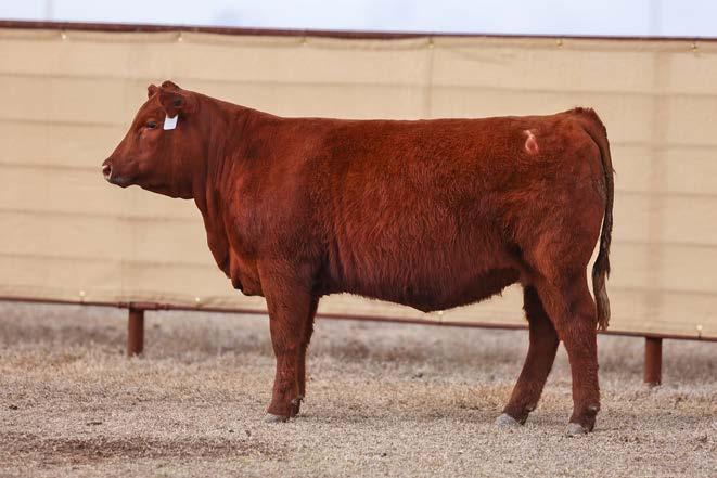 Calving ease female with strong maternal traits. Sired by Charter King, she ranks in the Top 10% HB, 11% CED, 9% DMI, and 8% Stay. A functional, balanced female with the kind to last and produce.
