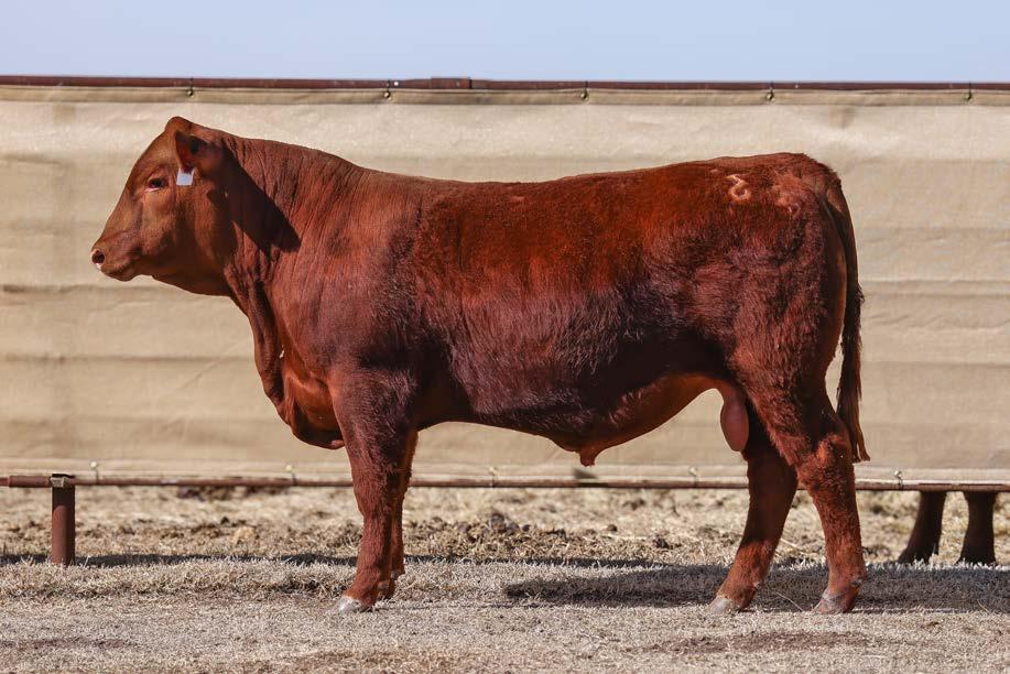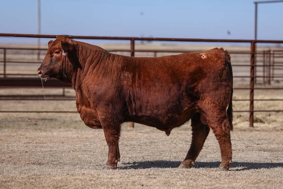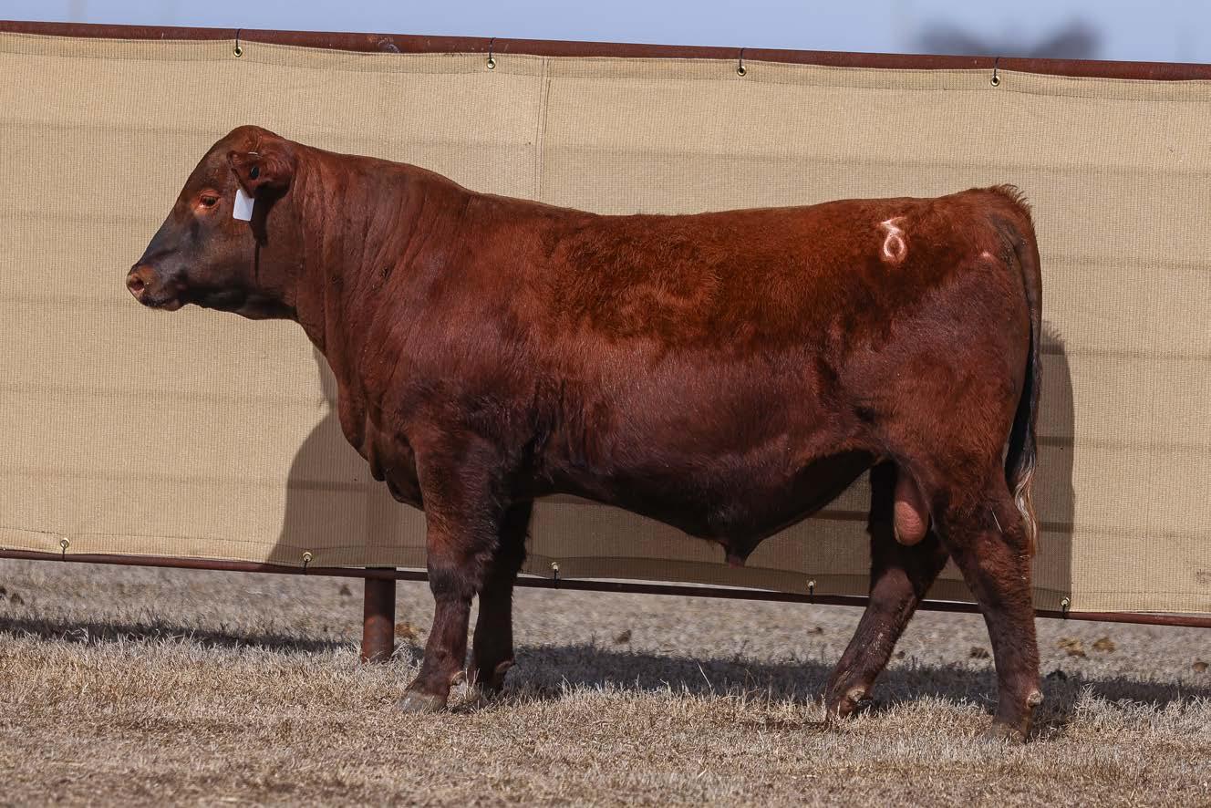 Really stout made and powerful. A strong maternal bull with added growth out of a Premier cow. Low maintenance type. Keep all of his heifers.