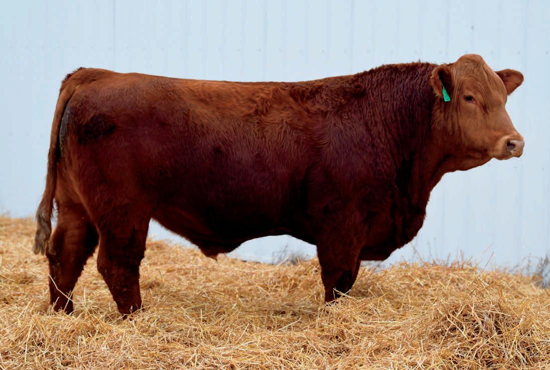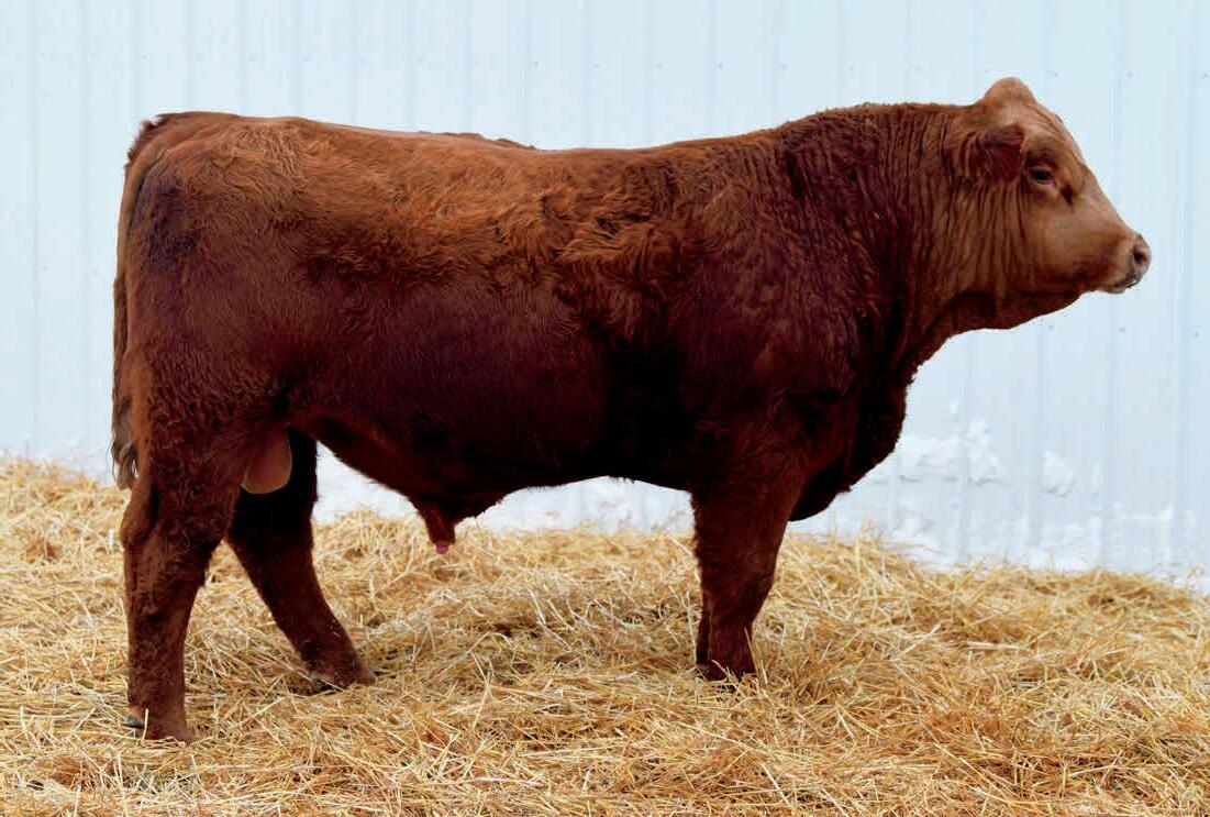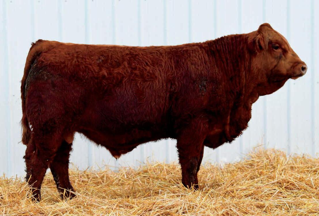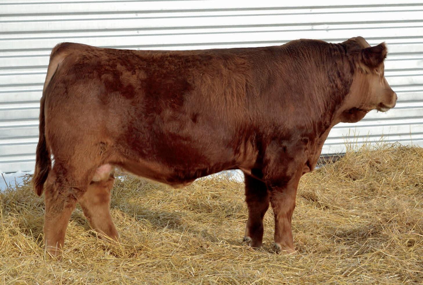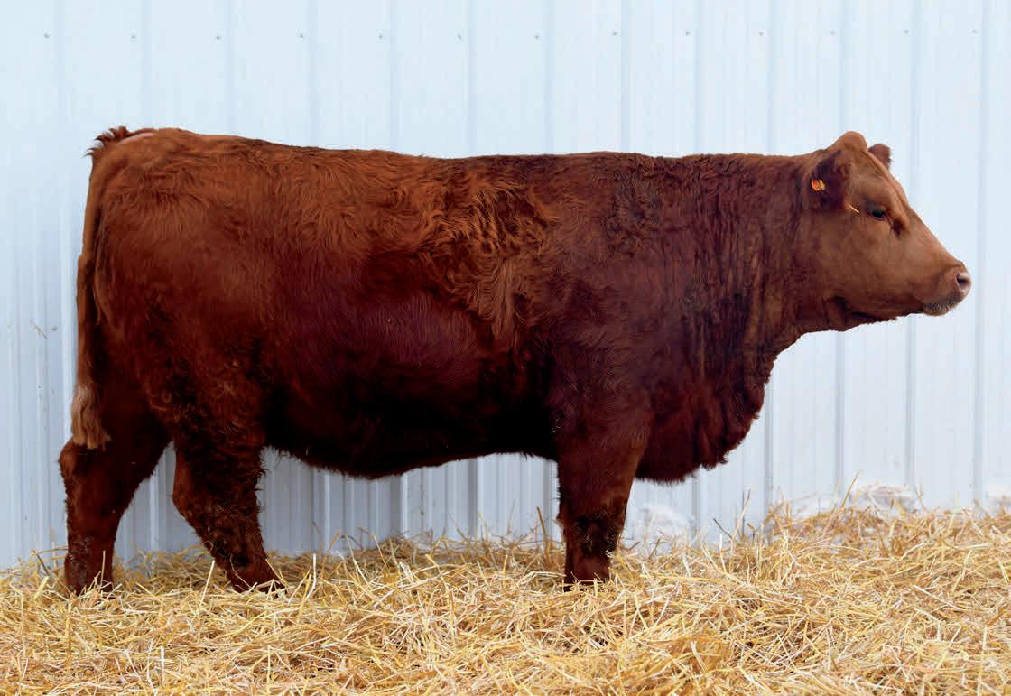 A darker hided red son out of our own herdsire, MAF Boost. Boost was Bata’s pick at the Meadow Acres dispersal in Canada. He’s loaded with muscle and frame. M491’s length of body and added frame will add pounds to your calves come fall.