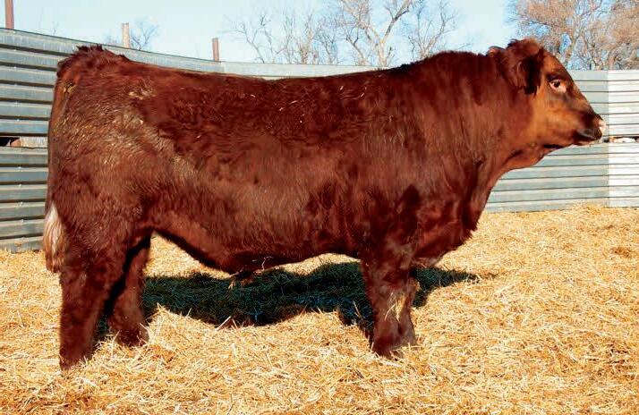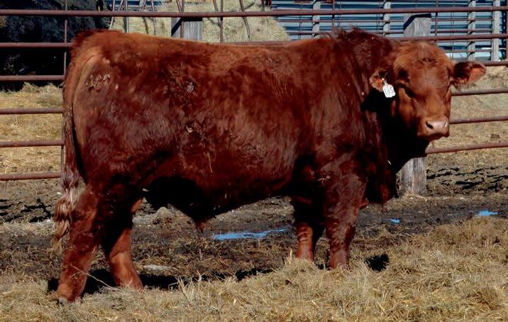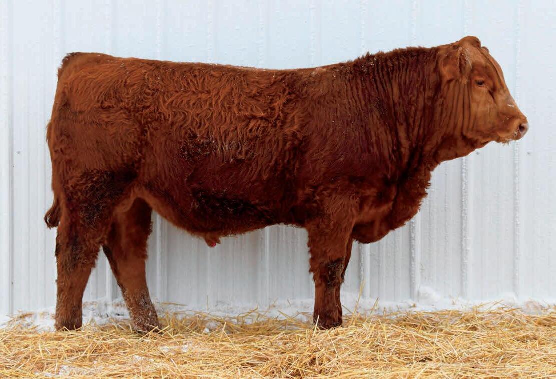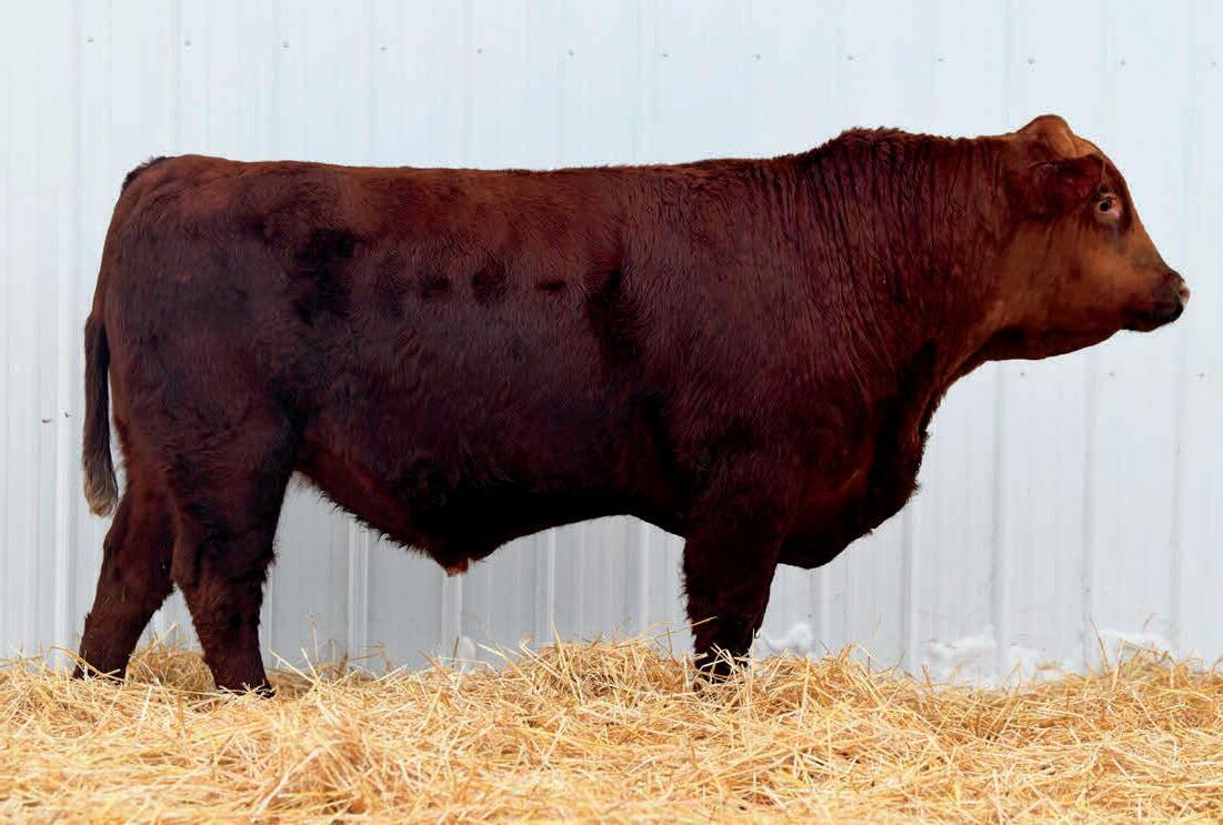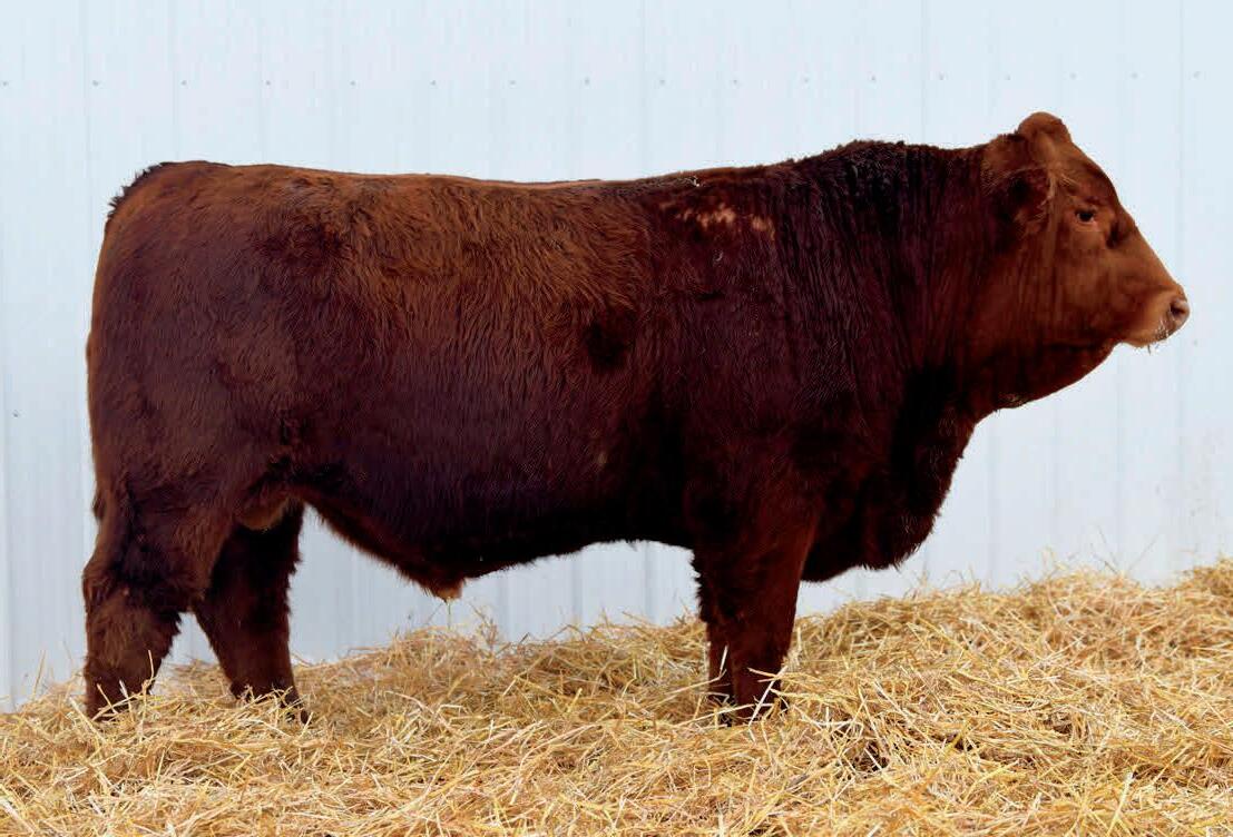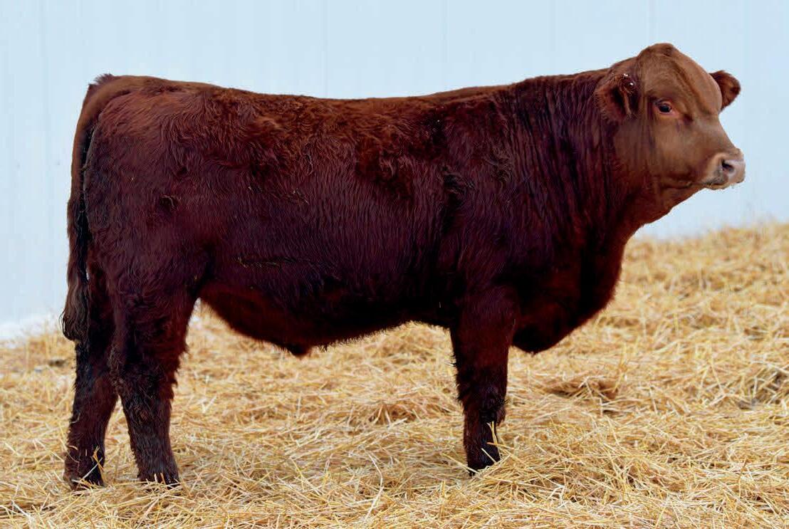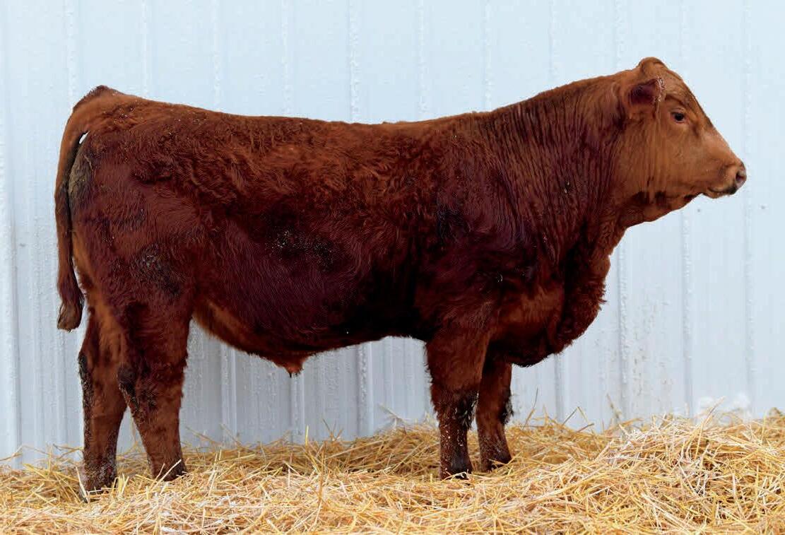 A darker hided red son out of our own herdsire, MAF Boost. Boost was Bata’s pick at the Meadow Acres dispersal in Canada. He’s loaded with muscle and frame. M491’s length of body and added frame will add pounds to your calves come fall.