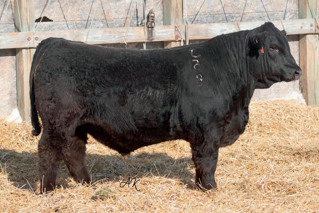 Here’s a long-sided bull out of TT Judson. Born at the end of March, he has kept up with his pen mates well. He ranked 7th at weaning with an adjusted weight of 735. Judson offers us a good balance of calving ease while also adding frame and growth.