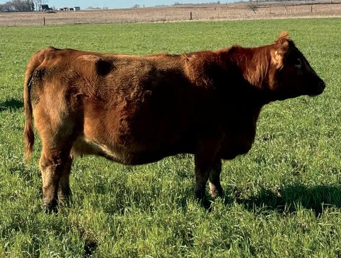 A big, square bodied heifer ranking in the top 15% for milk.. If she’s anything like her dam, she’ll have all she needs to wean off one heck of a calf! Pasture exposed to BBS Thunder Struck K1(412937) June 9 - June 30. AI bred to DCR Hard Impact(3780825) July 16. Ultrasound confirmed AI safe due April 24 with calf.
