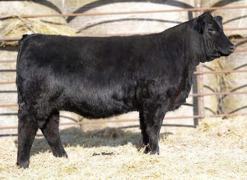 One word would describe this bull…STUD! This is the stoutest bull in the offering! Appreciate the volume, the bone, and the performance this bull offers along with his carcass merit and you should have a sale topping set of steers.