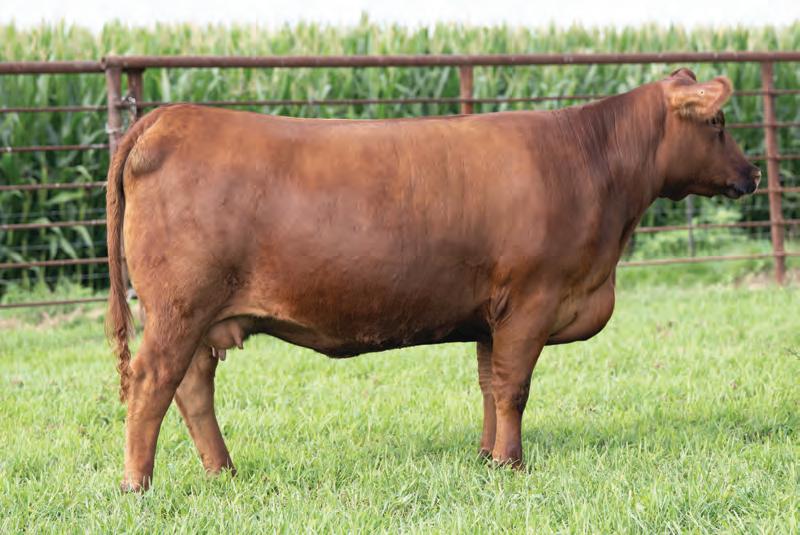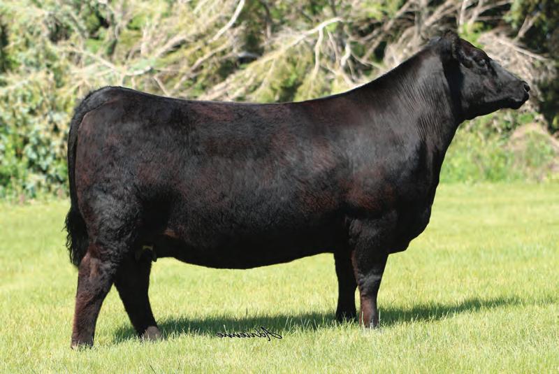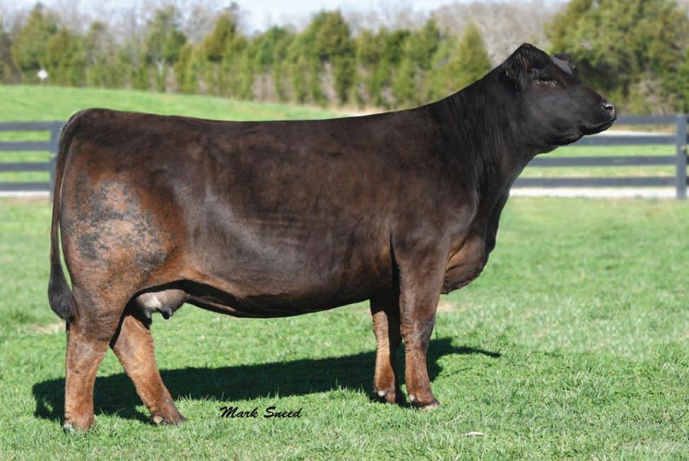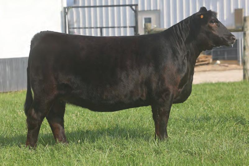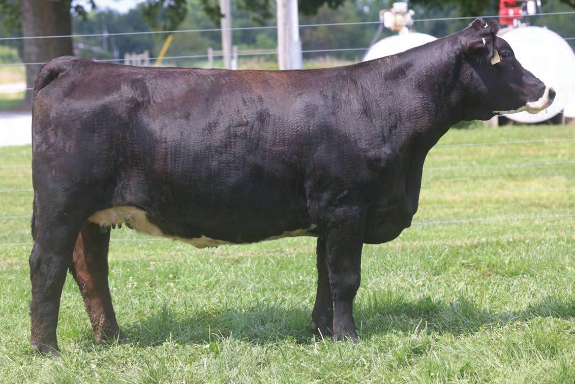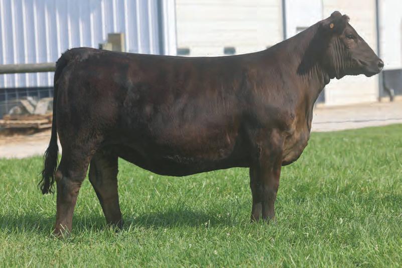 This young 3-year-old cow catches every one’s eye and certainly has made plenty of friends with anyone who has seen her She is bold in her design, with a long sweeping rib cage, powerful hip, sound structure, and is easy on the move Her temperament is sec ond to none . Her donor dam, DF Miss Pep, has 65 registrations and counting in the ASA Database and her sire, Colburn Primo, needs no introduction This young cow truly ties it all together, and we feel that her earning potential is truly unlimited She is due up for a Christmas baby to the scorching hot Point Proven bull, that sold two heifer calves for north of $100K in his first calf crop .