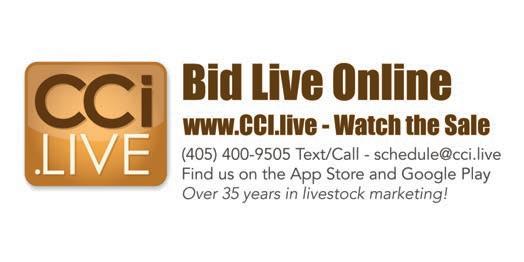 Bid online and watch the sale live, CCi live Call/Text, 405-400-9505 • schedule@cci live