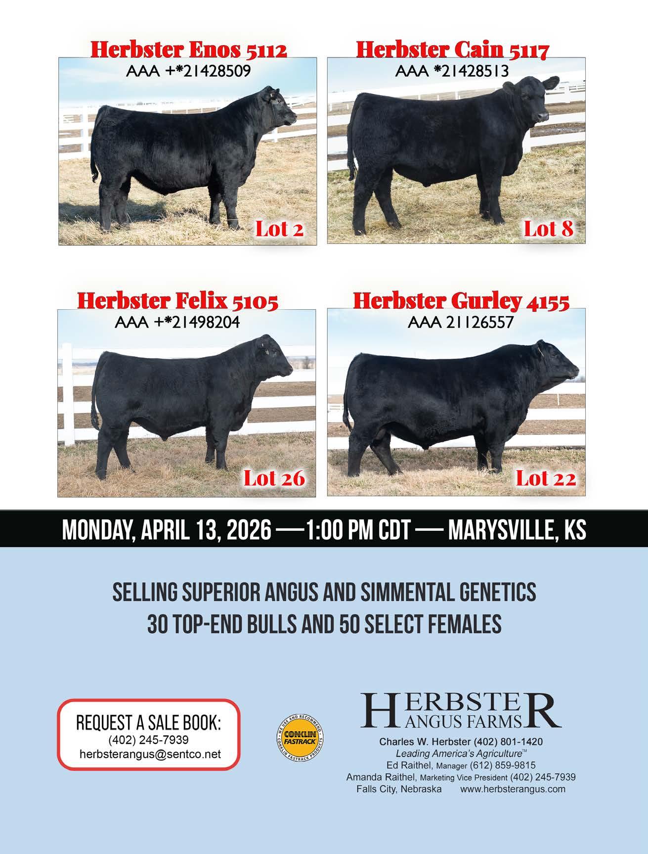 • 4/13/2026-Herbster Angus Farms-Marysville, KS-Sale