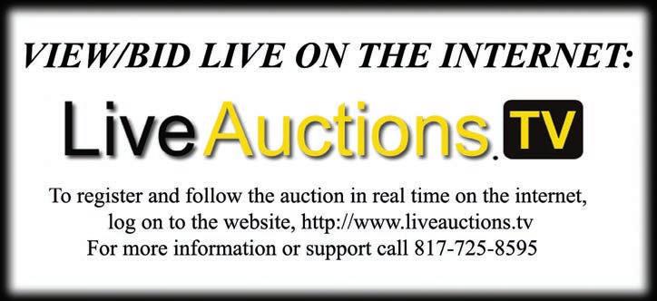 LiveAuctions.TV will carry the sale and you may register with them and follow the sale live and bid via the internet. LiveAuctions.TV.........................................................682-816-4900