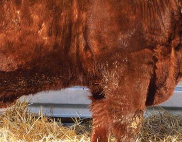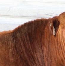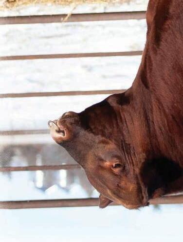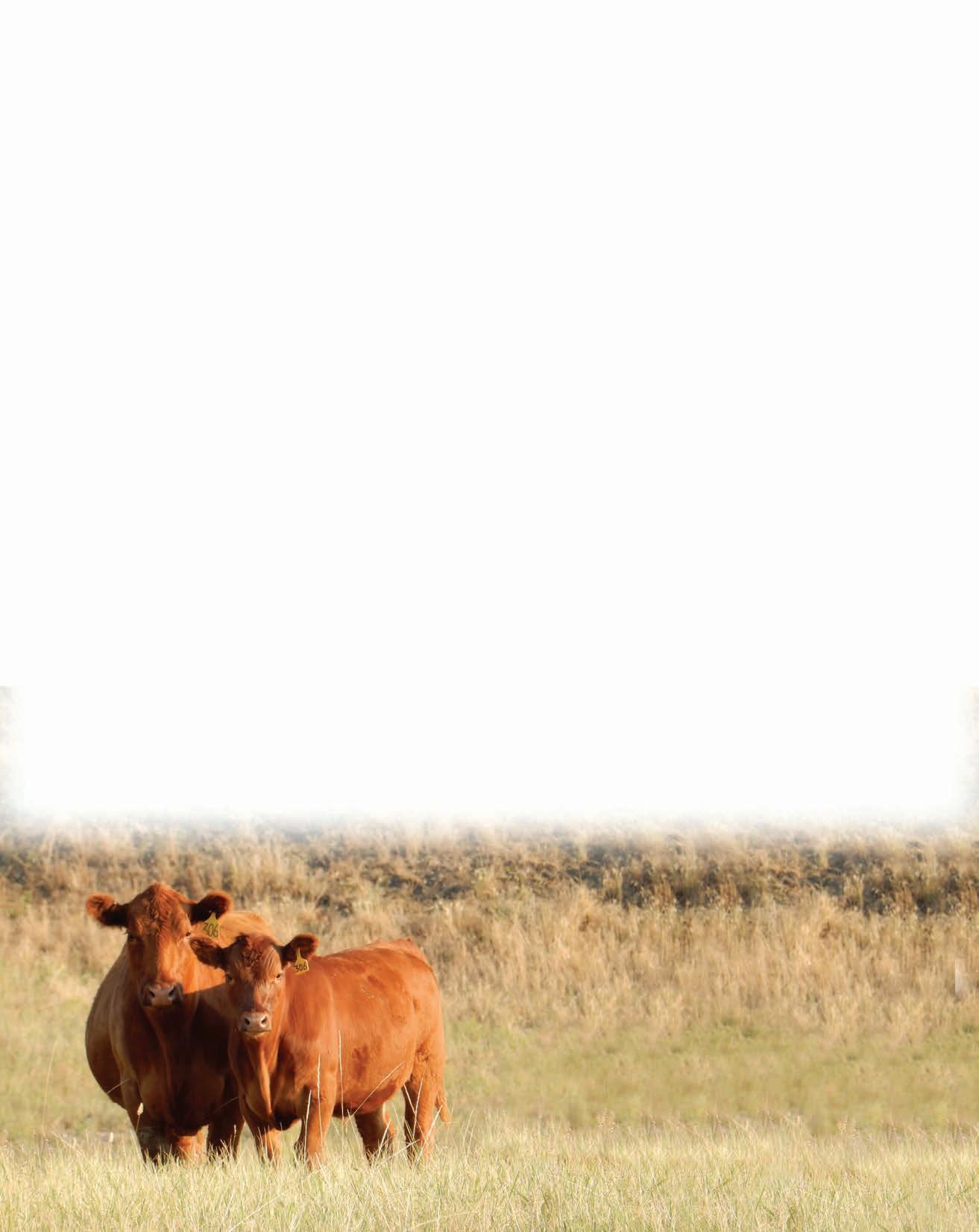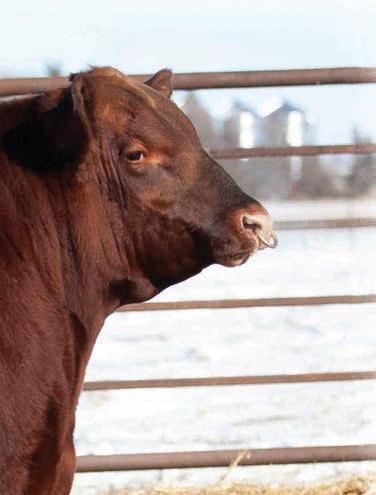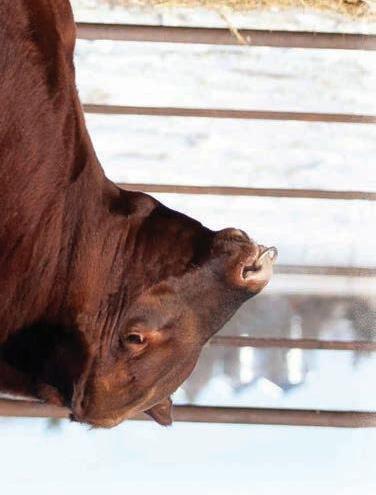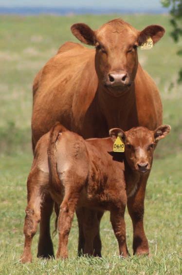 Red Angus cows have gained ranchers’ trust as a complete package through fertility, eshing ability, good disposition, longevity and excellent overall production. They produce feeder calves that earn premiums in the yard and on the rail through docility, feed efciency, conversion and carcass merit.