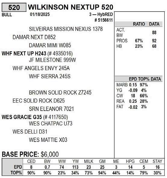 If you’re new to our sale, we will follow a private treaty bid-off format. We set a base price on every bull and record interested parties for each bull up to the sale. On sale day, we then proceed with phone bidding between all interested parties for each bull. Highest bidder takes the bull. We feel this format is a low-pressure, convenient way for us to generate a little more income on the bulls with more interest while also giving bidders the chance to switch bids at any time to a different bull of their liking if they desire a lower price. This year we will be hosting an excel sheet that buyers can utilize to view current bids in real time. The link is available on the ‘Bulls for Sale’ page of our website, www.WilkinsonRedAngus.com. Buyers will still need to call or text if they want to put in a bid but we will continuously update it for the buyers following bids. We will begin recording bids and putting bidders on the sheet March 1st and close March 8th around 7pm. Bulls will be available for in-person viewing anytime beginning February 22nd - Please give us a call or text to arrange a time. We also understand not everyone needs a bull every year. If you don't, we would be immensely grateful if you would please pass this catalog along to a neighbor or leave it at your local elevator or sale barn.