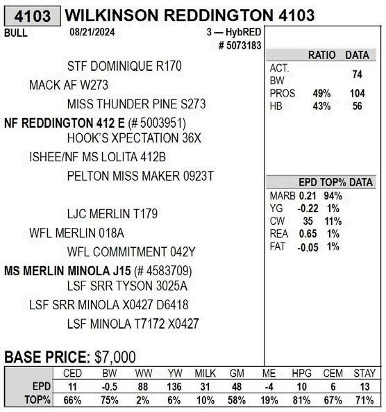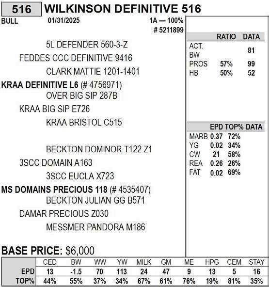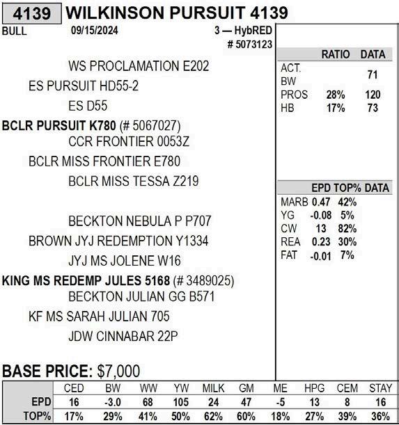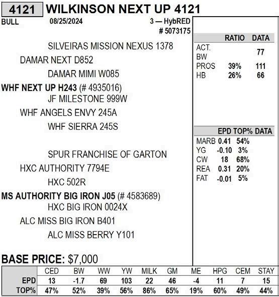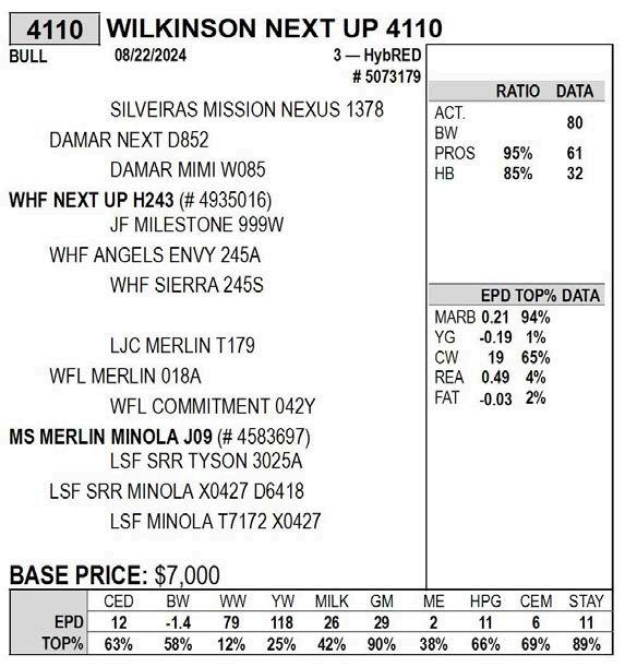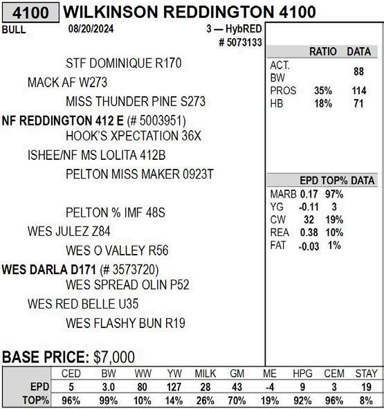 SaleCattleViewing: Bullsandtheirdamswillbe availableforin-personviewingbeginningMarch1st.Videos andphotosofthebullswillalsobeavailableonour website,www.wilkinsonredangus.com.Supplementary photosandvideoscanbemadeavailableuponrequest.