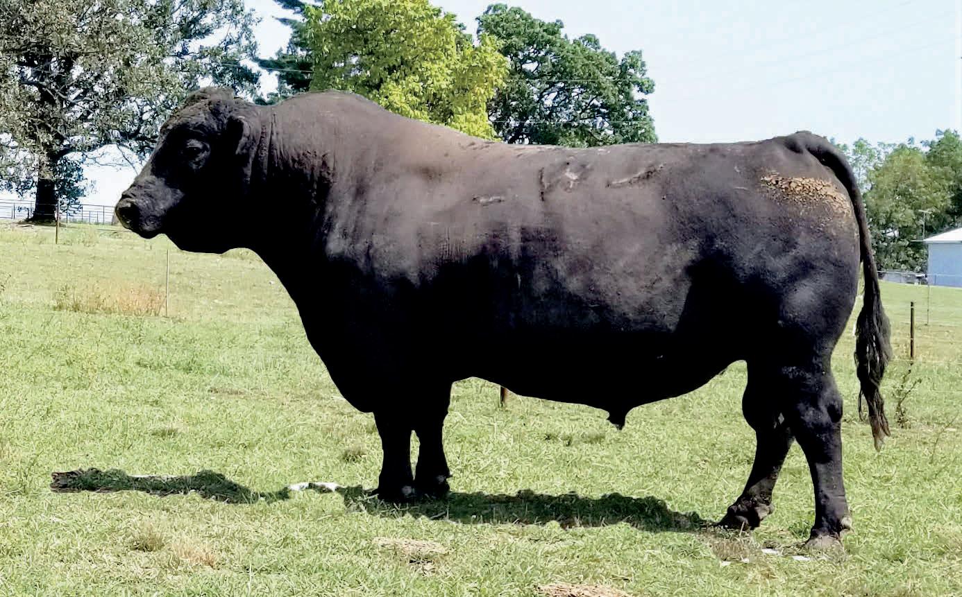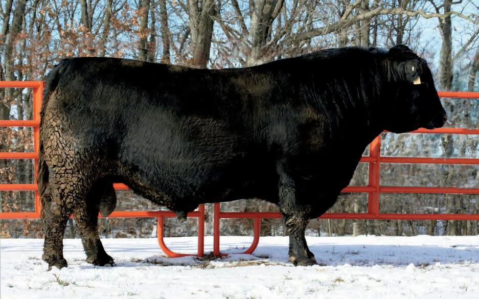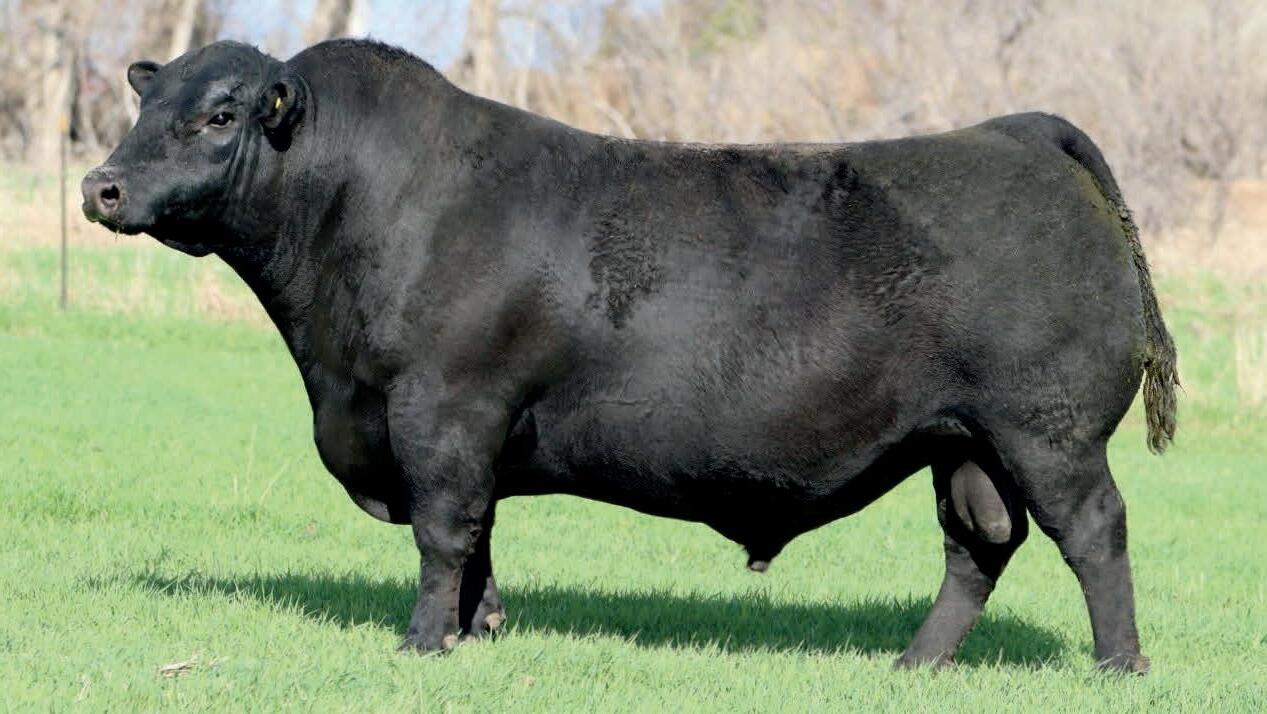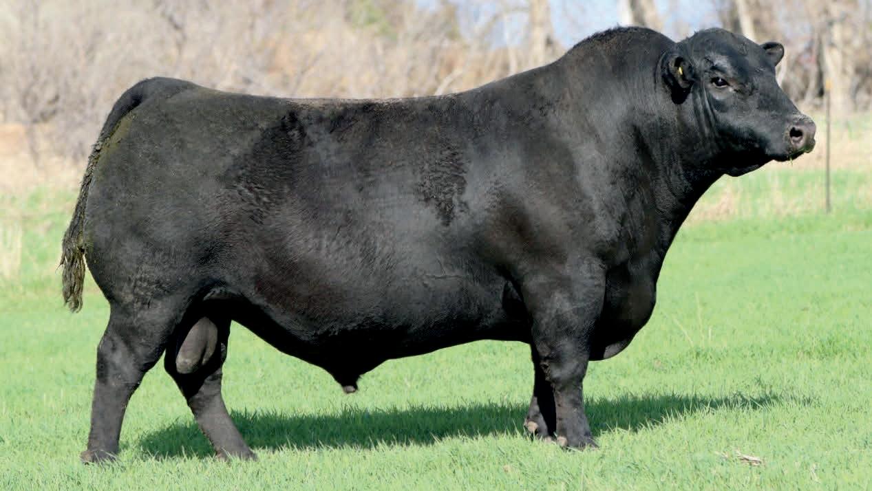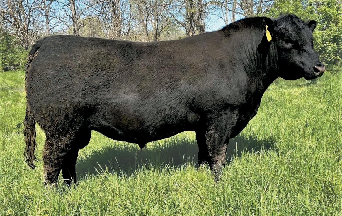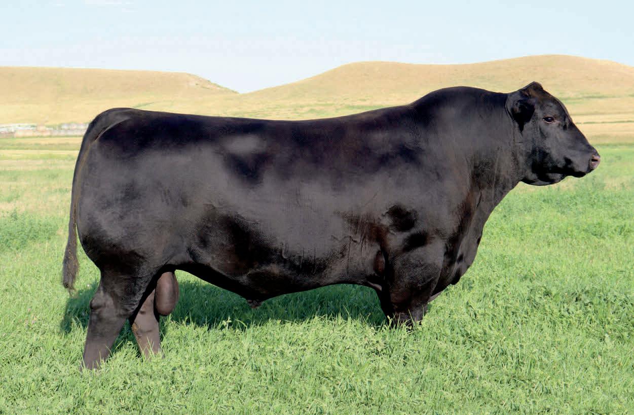 Herdsman was one of the true highlights of the 2025 sales season. As the lead-off Lot 1 feature at Koupals B&B Angus, Herdsman topped the sale - selected by one of the most respected and discerning operations in real ranching country, MR Angus. Herdsman brings true power, substance and structure while being backed by some of the most predictable maternal value in the industry. Within his contemporary group - Herdsman was the #1 adjusted weaning weight and #2 adjusted yearling weight. He sported a 128 IMF ratio and 109 REA ratio. Herdsman’s dam, Pride 711, is the upand-coming elite donor in the Koupals B&B program - earning her place due to impeccable feet, fertility and production. True power, performance and maternal - real world value!