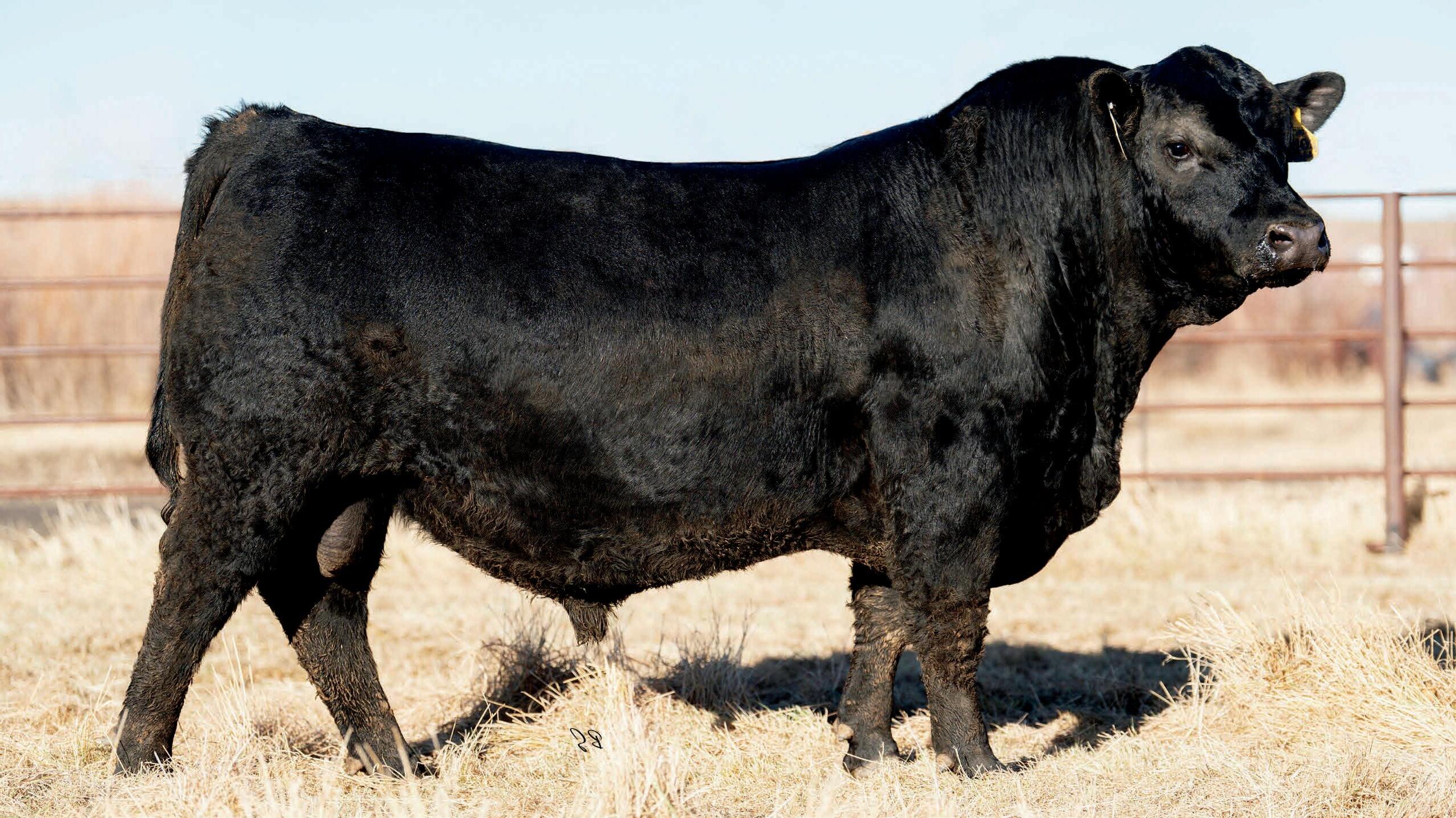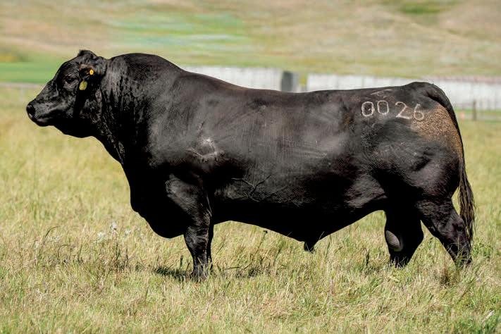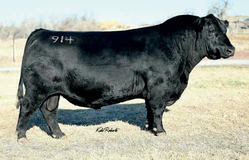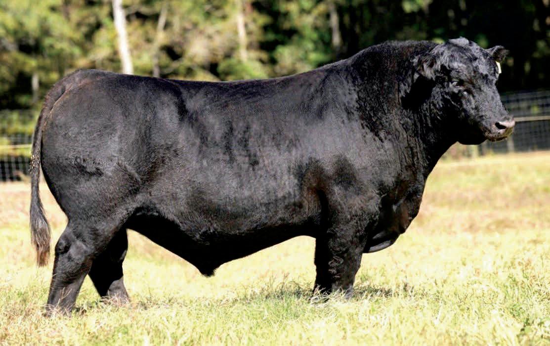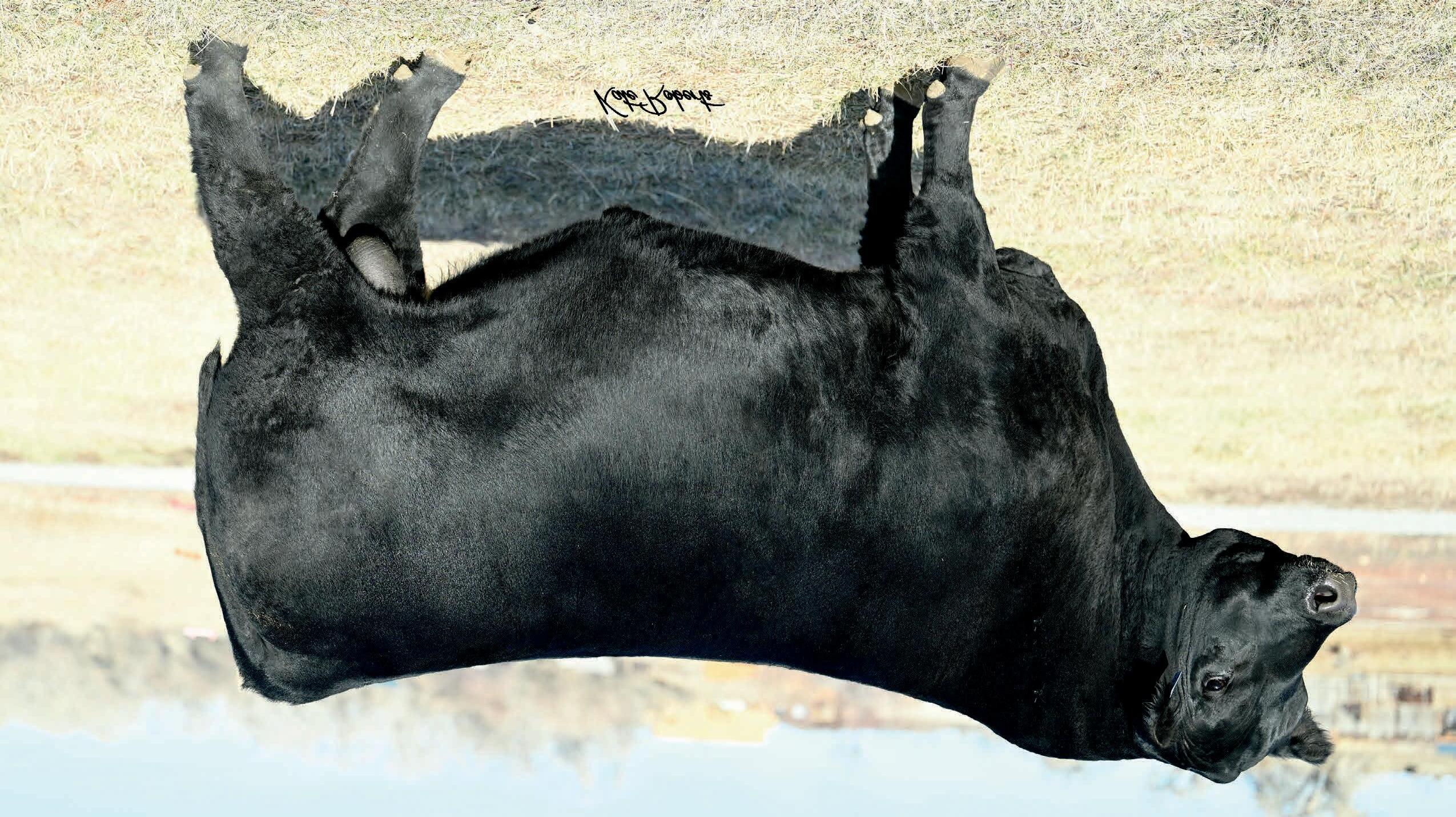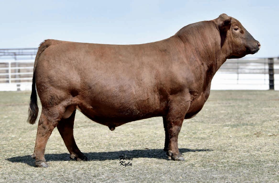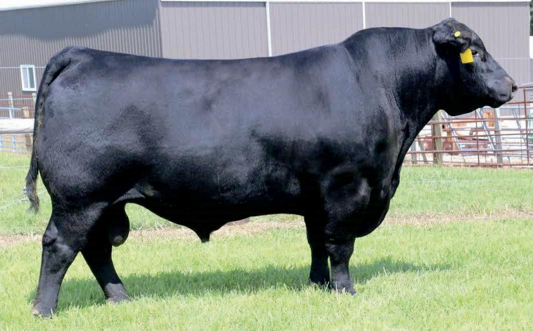 Herdsman was one of the true highlights of the 2025 sales season. As the lead-off Lot 1 feature at Koupals B&B Angus, Herdsman topped the sale - selected by one of the most respected and discerning operations in real ranching country, MR Angus. Herdsman brings true power, substance and structure while being backed by some of the most predictable maternal value in the industry. Within his contemporary group - Herdsman was the #1 adjusted weaning weight and #2 adjusted yearling weight. He sported a 128 IMF ratio and 109 REA ratio. Herdsman’s dam, Pride 711, is the upand-coming elite donor in the Koupals B&B program - earning her place due to impeccable feet, fertility and production. True power, performance and maternal - real world value!