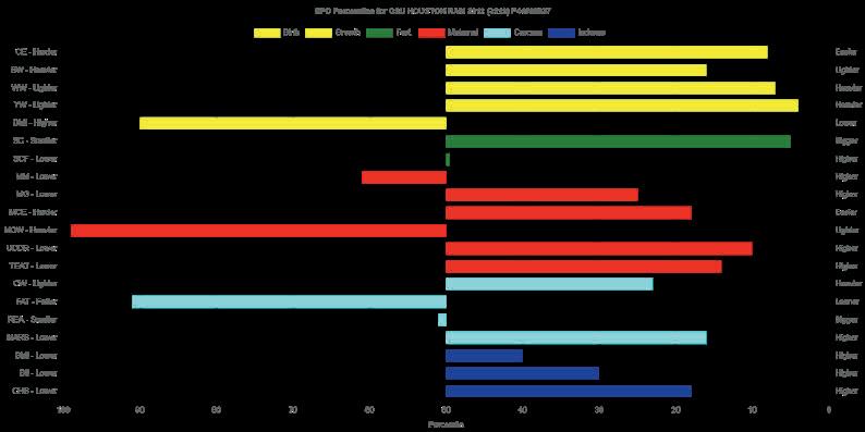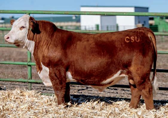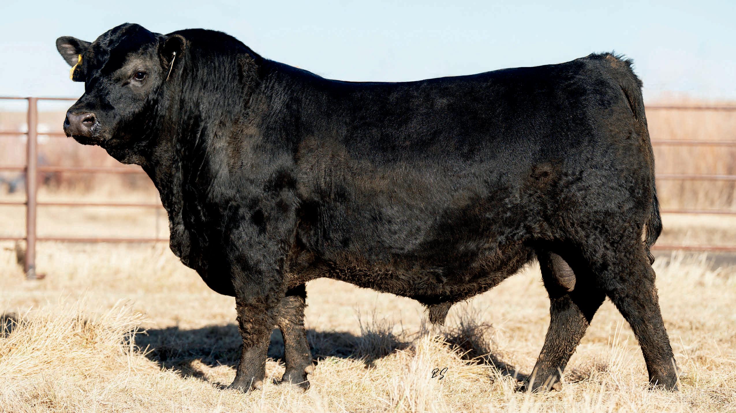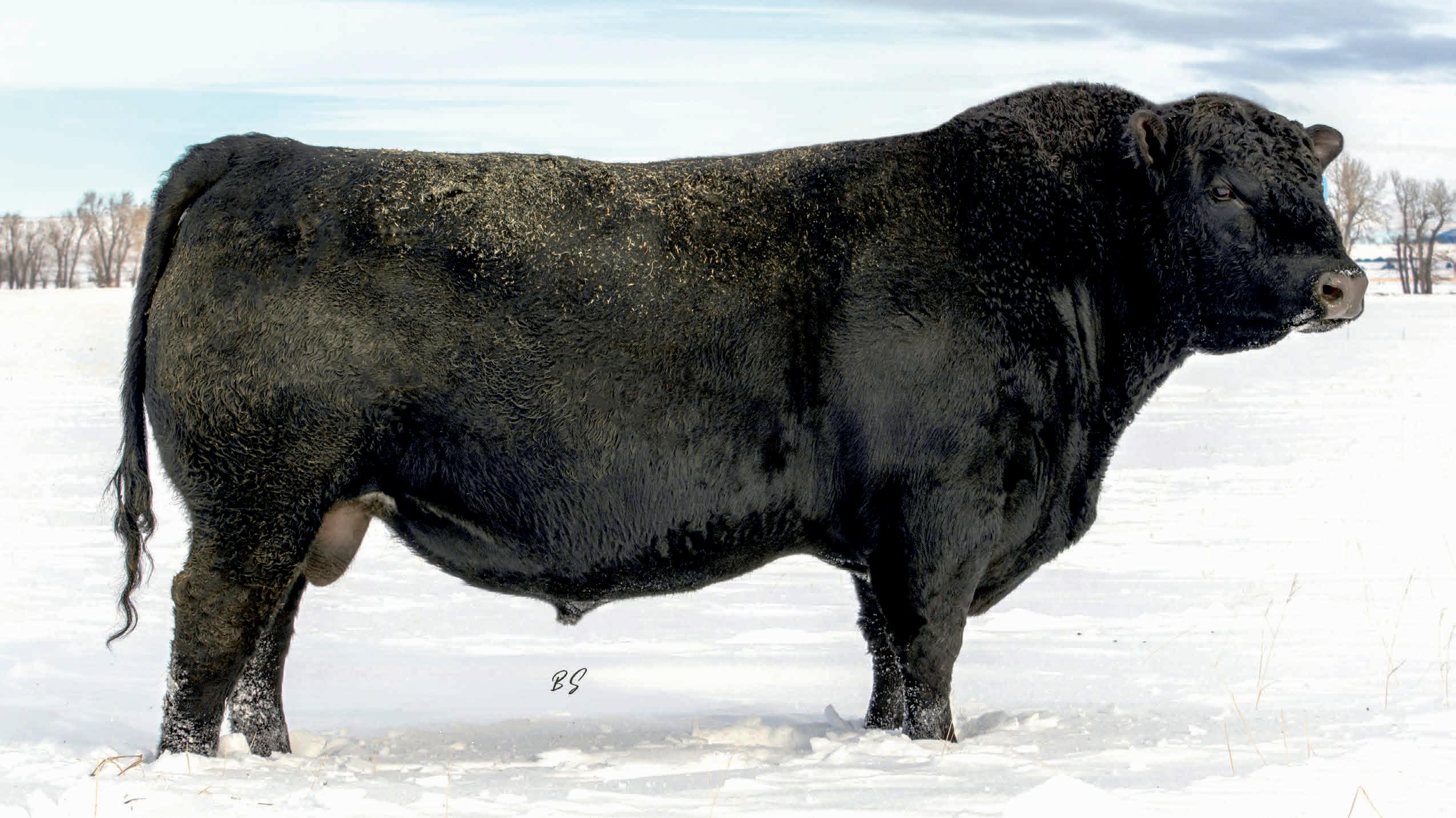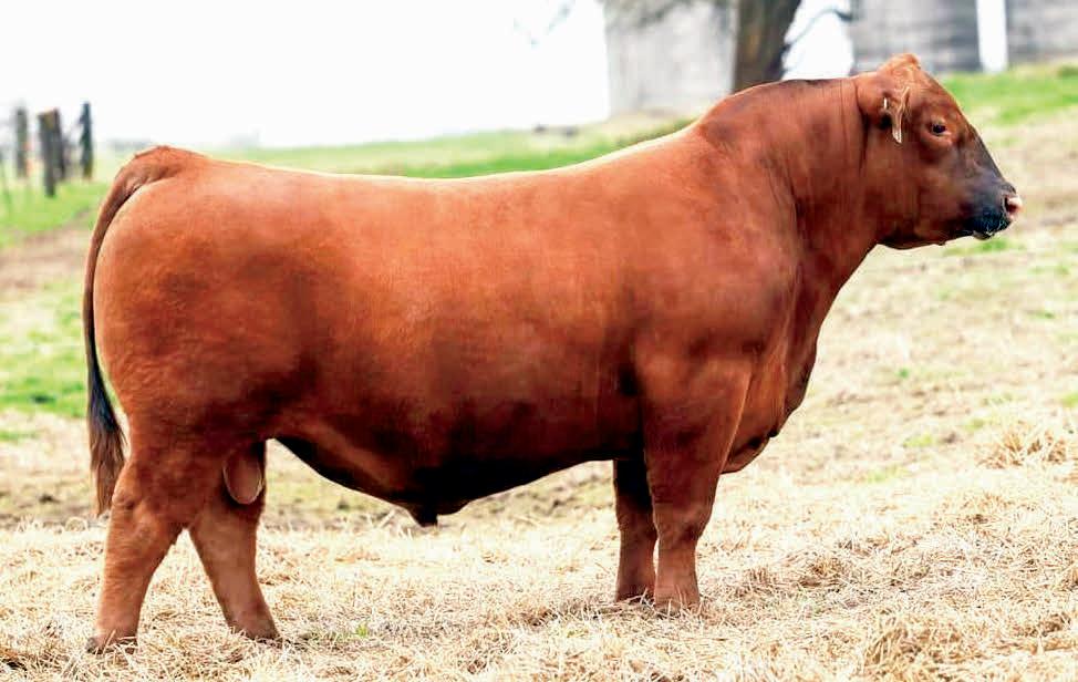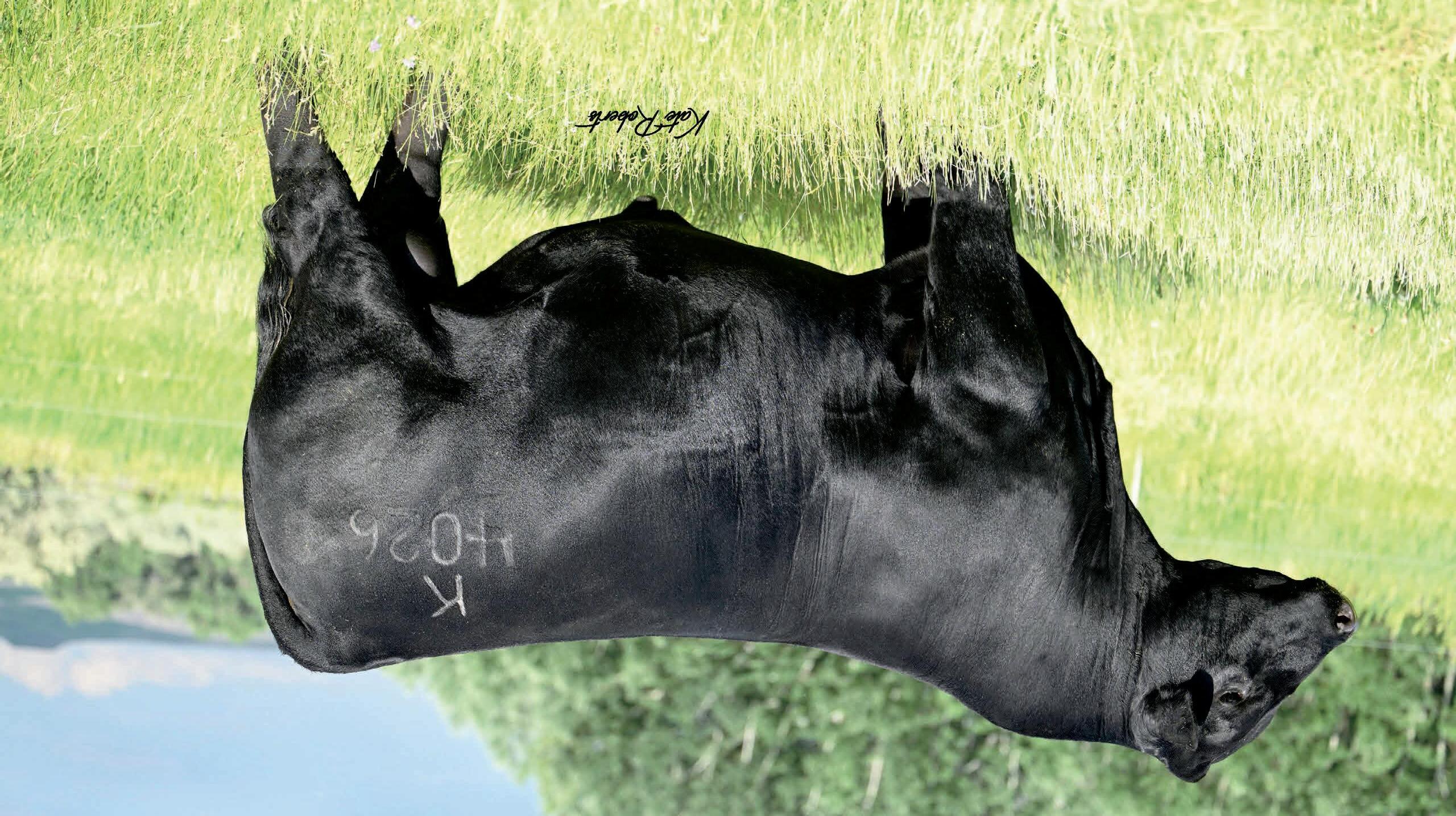 Herdsman was one of the true highlights of the 2025 sales season. As the lead-off Lot 1 feature at Koupals B&B Angus, Herdsman topped the sale - selected by one of the most respected and discerning operations in real ranching country, MR Angus. Herdsman brings true power, substance and structure while being backed by some of the most predictable maternal value in the industry. Within his contemporary group - Herdsman was the #1 adjusted weaning weight and #2 adjusted yearling weight. He sported a 128 IMF ratio and 109 REA ratio. Herdsman’s dam, Pride 711, is the upand-coming elite donor in the Koupals B&B program - earning her place due to impeccable feet, fertility and production. True power, performance and maternal - real world value!