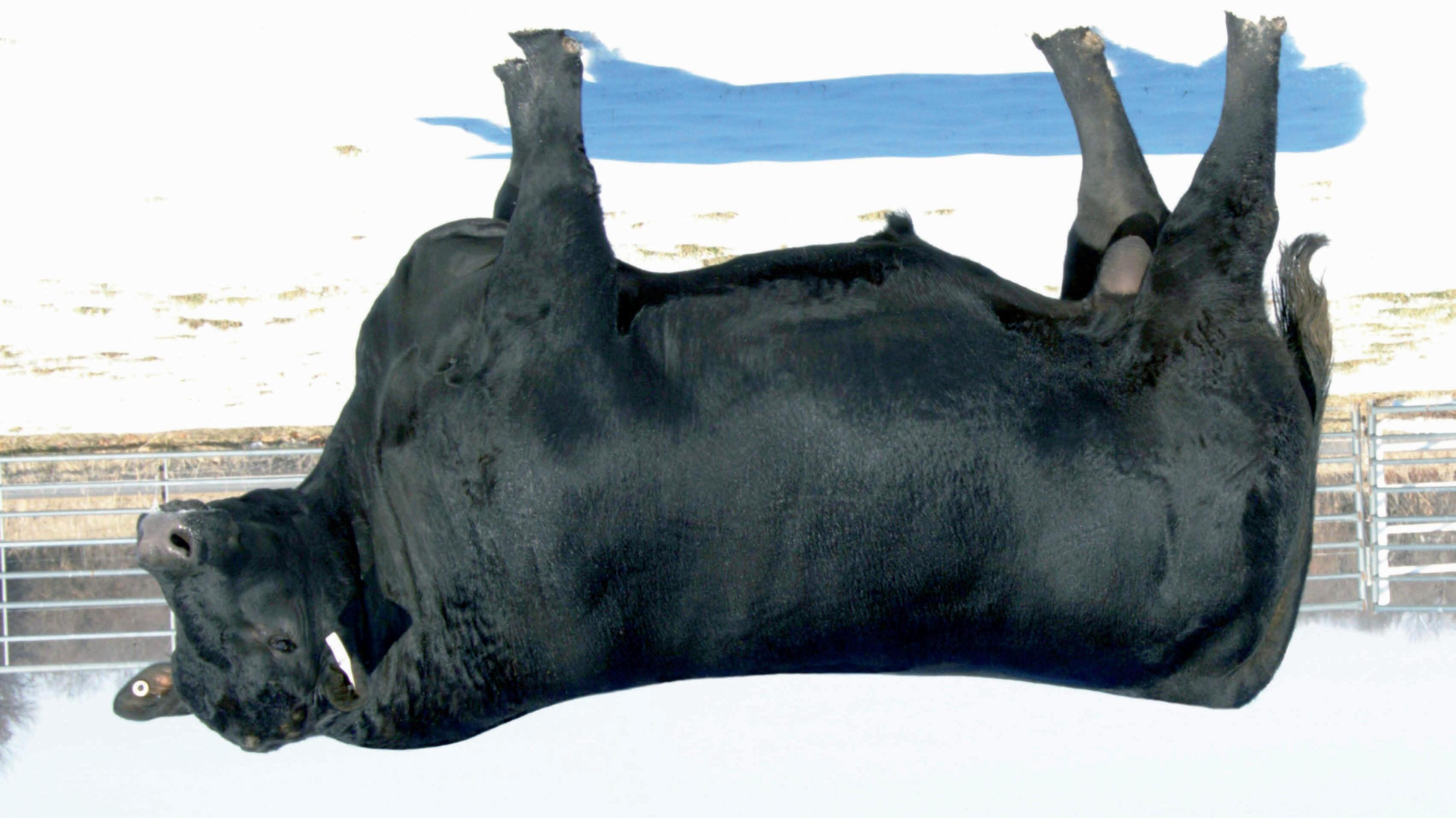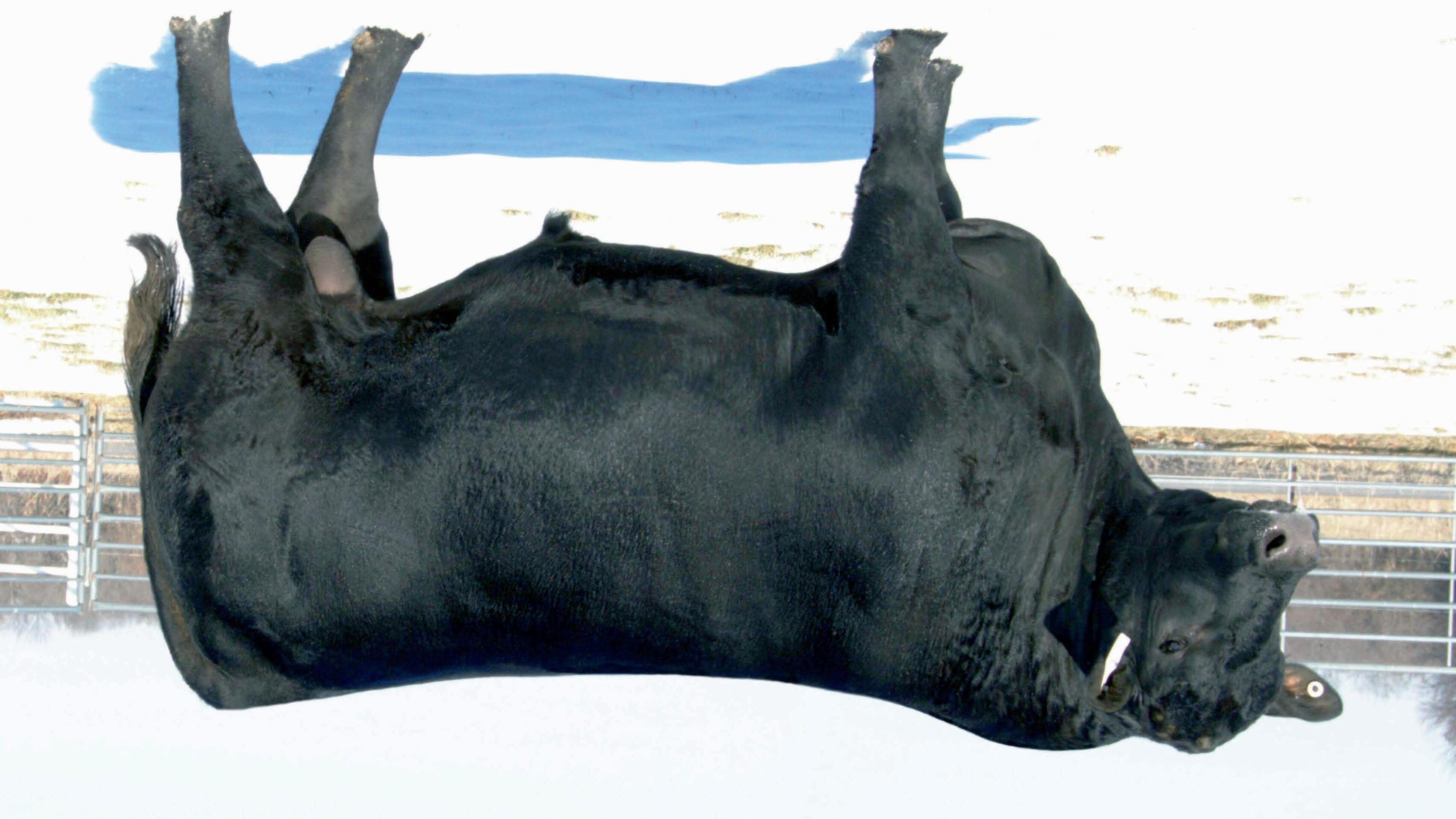 Bravado is an outcross calving-ease sire with tremendous feet and an outstanding disposition! He has been used successfully in large ranch heifer breeding projects with great results at preg-check and calving. Bravado is backed by proven maternal heritage. He descends from three consecutive donor cows that have stood the test of time and are still producing in the tough Northern Montana environment of Shipwheel Cattle Company. The cows behind Bravado exhibit exceptional maternal instinct, udder quality, feet, fertility and do-ability. Bravado brings the fundamentals of functionality to the table - Top 1% $M with elite Claw, Angle, Scrotal and HP. Bravado is a positive $EN Sire that is making outstanding replacements.