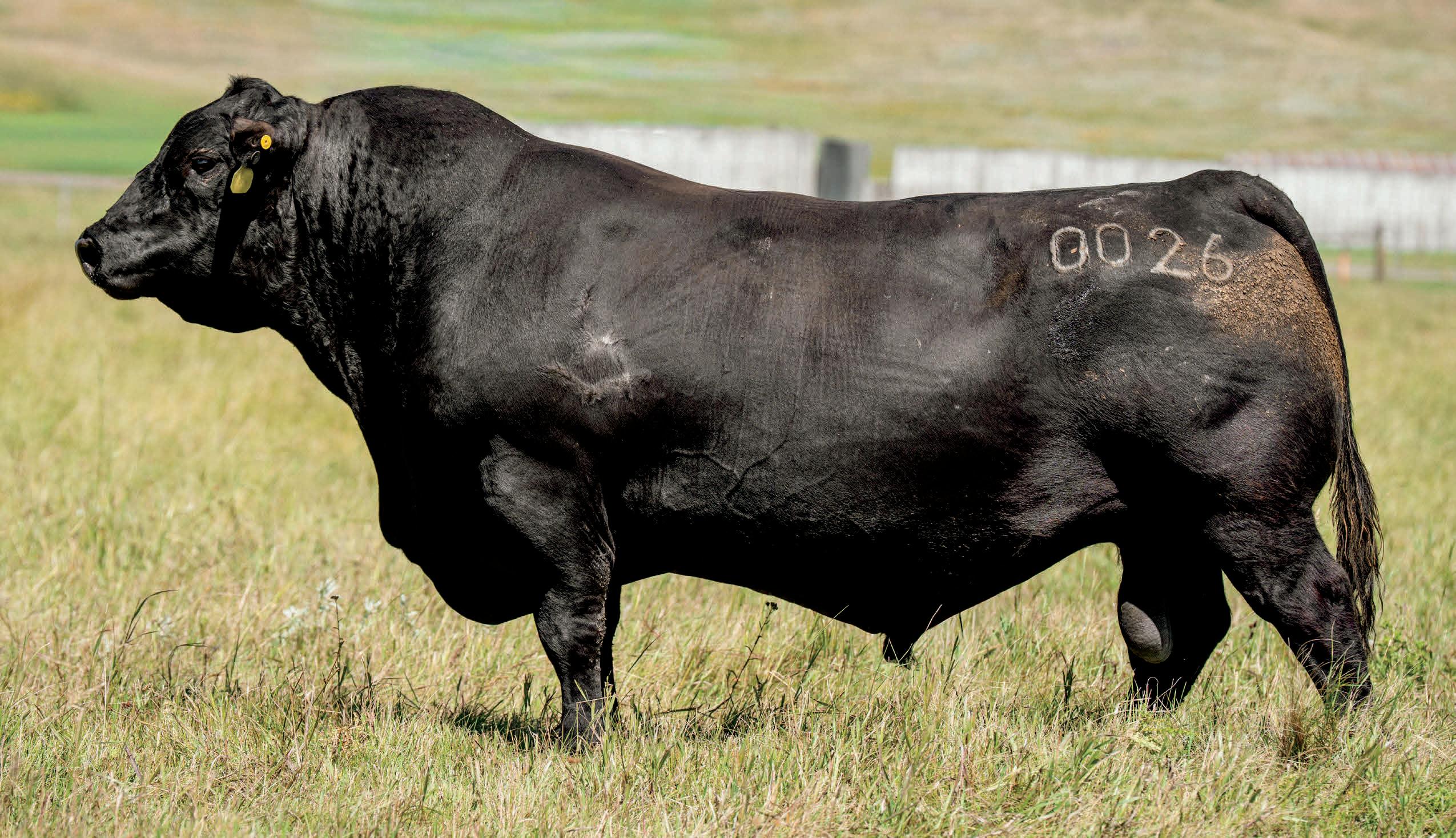 0026 has earned his stripes as a proven mature Herdsire. He is moderate framed, thick made and easy fleshing with excellent feet. He has been bred to hundreds of heifers with great success over the years. 0026 daughters look to be his legacy. They are outstanding with tremendous udder quality and the ideal maternal design. Tremendously long bodied, 0026 will stretch out cattle while maintaining muscle shape and ease of flesh. Turn to 0026 for calving ease, structural integrity and predictable maternal value.