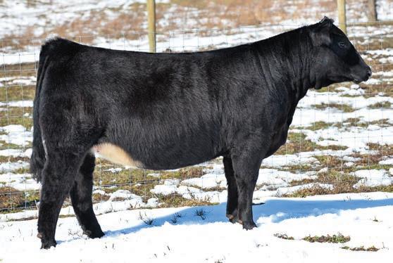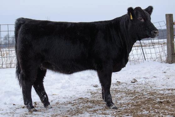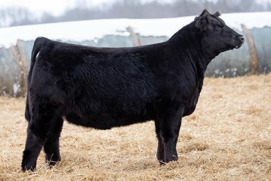 This solid black heifer out of Something About Mary and our Gemstone cow is as good as they get. She has the bone, belly, hair, thickness, and style we all look for. She can get out and move. Check her out at the sale and you won’t be disappointed.