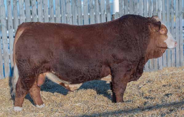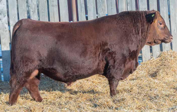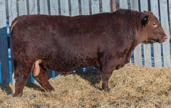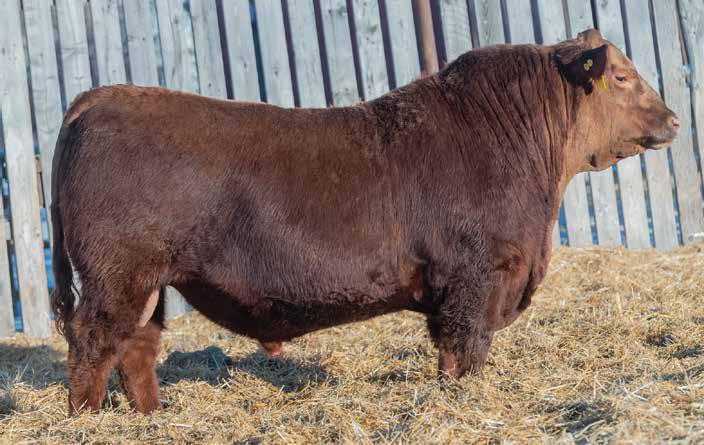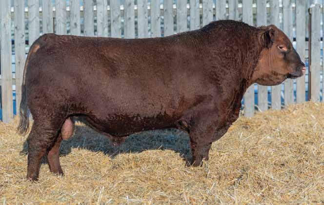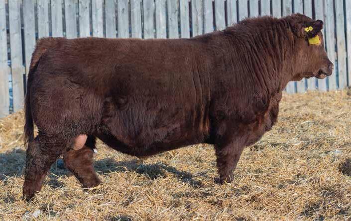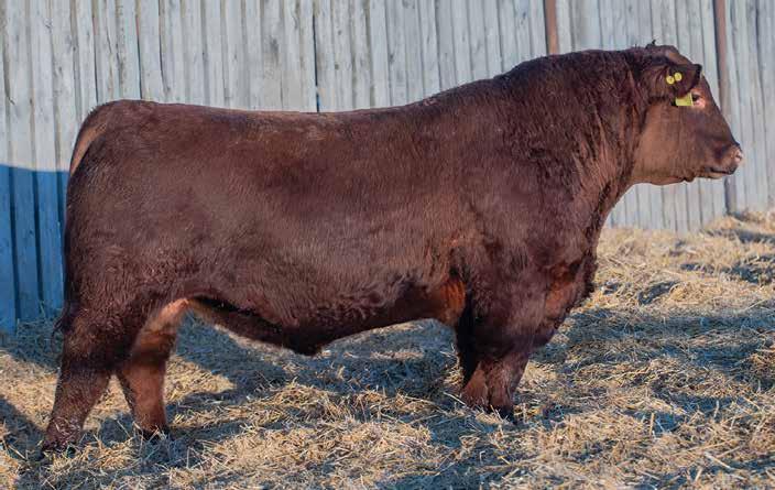 He’s a light birthweight bull but not a heifer bull. His maternal line has plenty of power with Flex and Damage in the pedigree. He is our 2nd heaviest 2yr old Red Angus at 2044 lbs. Sure to get some amazing steers out of him. A cow bull here. Parent Verified.