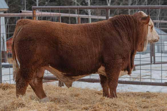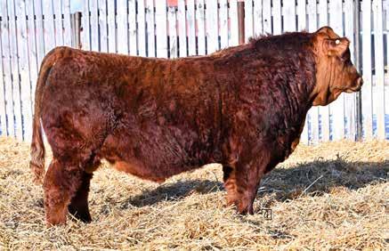 This bull has always had the herd bull presence and checks all the boxes. He is deep and long bodied, with a good set of feet under him. Having a great disposition and being my heaviest at both weaning and yearling weight time. I would look to him to raise awesome steer calves and great replacement heifers. I have a first calver full sister that is beautifully uddered and the type I strive to produce. His dam came from the Spring Creek dispersal as one of my top picks, being moderate framed and raising top end calves. I think he will get a lot of attention come sale day.