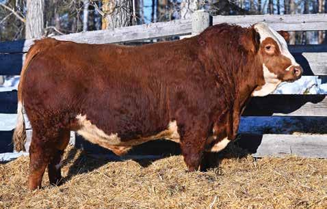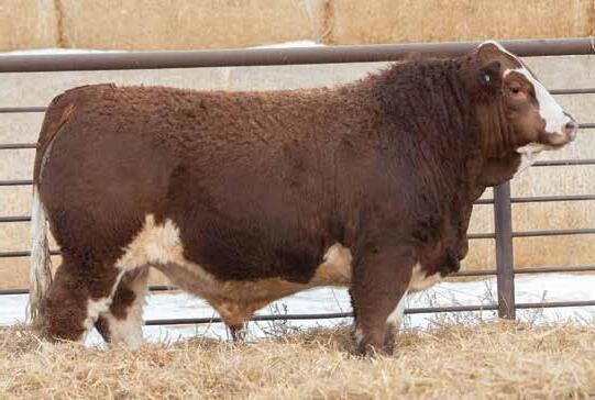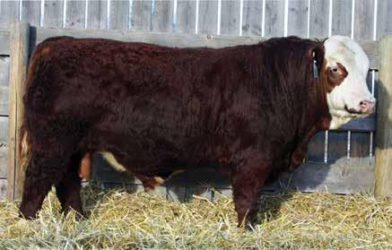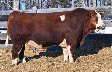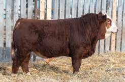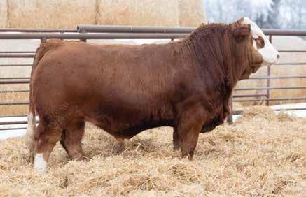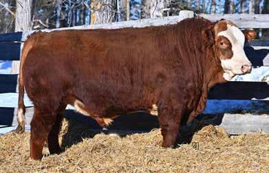 A real eye catching long bodied, good haired blaze faced bull here. I believe he would work well on a young set of cows to be a little easier calving without sacrificing any growth. He comes from a productive red label cow that has raised herd bulls for Dar-Rox farms and Fredrick Strate also being the maternal grandam to the previous lot KZ Epic 103N.