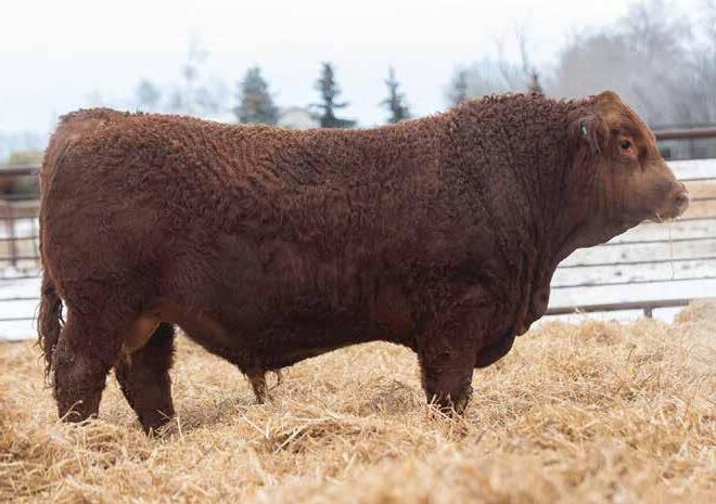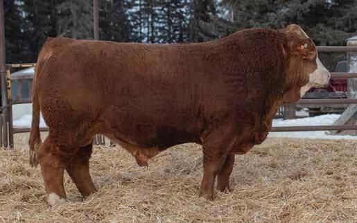 First off, I would like to thank my past buyers for all their support. I’m excited about the ten head I am bringing to town this year. My belief in the cattle industry is to raise cattle that come out with ease and have lots of growth, because we get paid by the pound. I run 50 registered purebred Simmentals, as well as a few commercial cows. When choosing my bulls I cull extremely hard for disposition, feet, structure and muscle. I am excited to see what these bulls can do for their new owners. I’m looking forward to seeing you at the Thorsby stock yards on March 12, 2026.