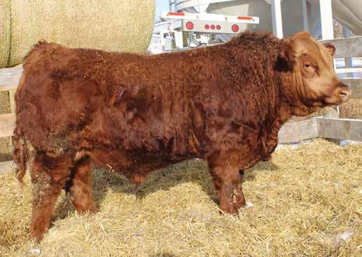 HORNED, DILUTOR FREE, PARENT VERIFIED Impact is a RWR Sully grandson that is dark red, heavy haired, double wrap around goggles and has lots of muscle. Sulley x Sugar Ray produces a power bull that you can stick on your cows with no problems. BLL Carly 27H is a bull maker!! I have yet to get a female out of this tank of a cow. Near perfect feet and an excellent udder are qualities that this bull will put into his offspring.