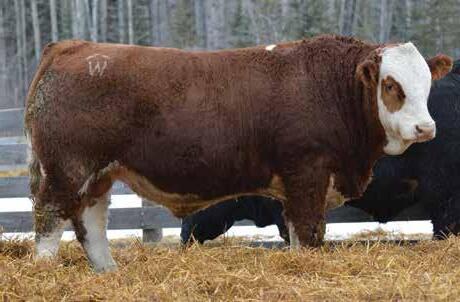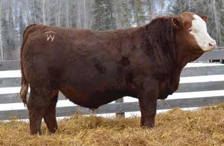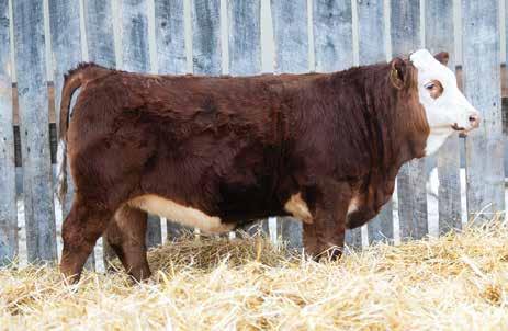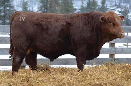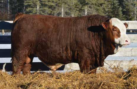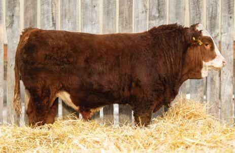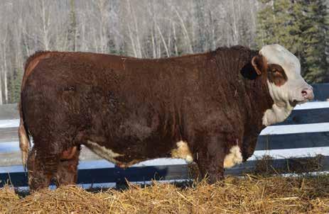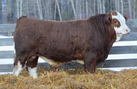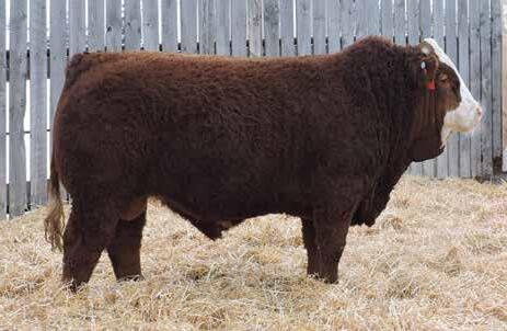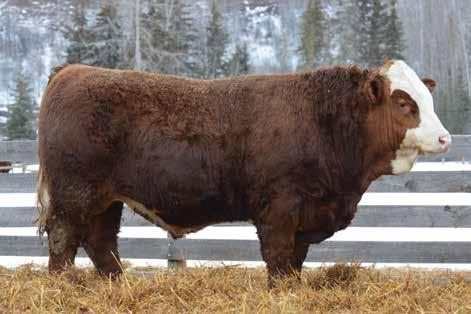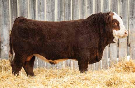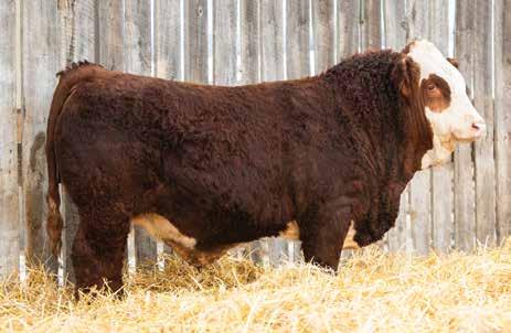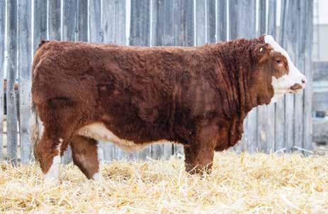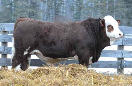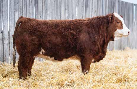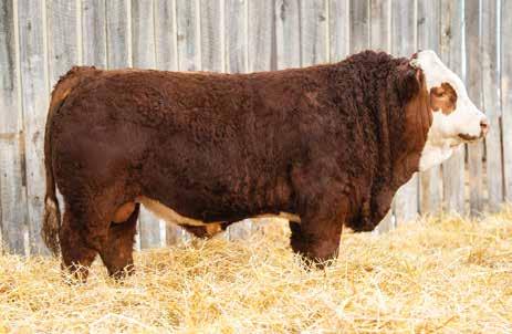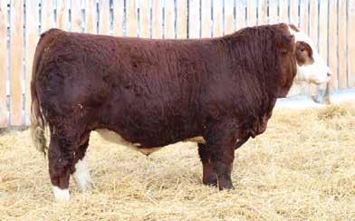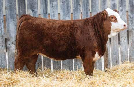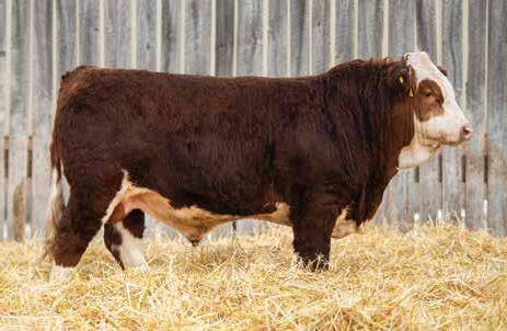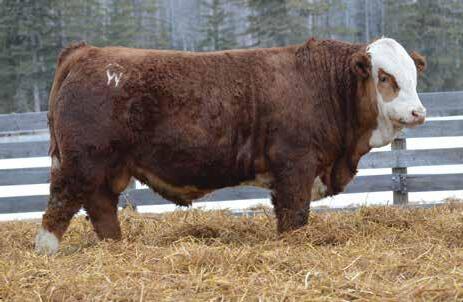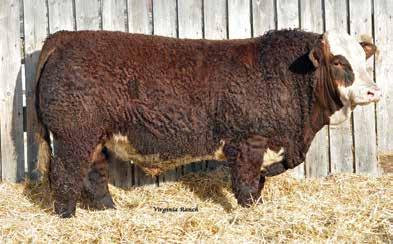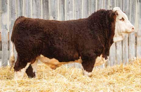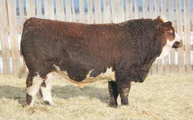 This bulls Dam is one of our many cows from a bull that we called “Sting,” Wolfe Atomic 616A. I have said for years now that our “Sting” females are the best cows we have ever produced on the ranch. Nike is out of a nineyear-old cow who is pretty much flawless; she has good feet, good udder, a very good temperament, and produces an exceptional calf every year. Here is a bull that I feel will add pounds to his calves and his females should have many excellent qualities.