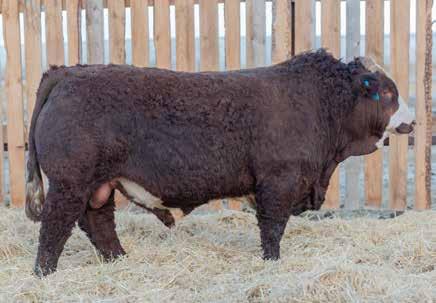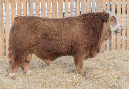 I just mentioned Wolfe Farms in the last footnote, well this fella comes from a female we bought from Tony a few years back that we absolutely love. Her son out of BLL Voltage sold last year to Crocus Coulee Cattle Co. (Jessie Young) and a bred heifer sold to Madge Simmentals at the female sale two years ago. Decker is a polled, big butted square-topped, very correct fella and lacking no hair.