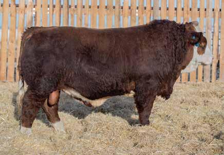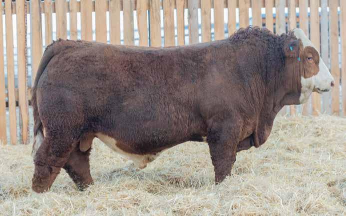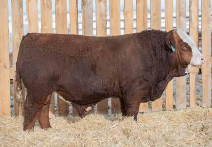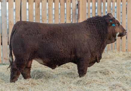 • Trooper is a dark red, heavy haired polled Titan son that will work perfect in a pen of heifers. He’s smooth made with a tiny skull, easy fleshing and flashy look to him.