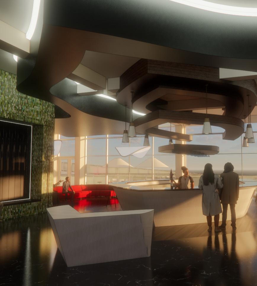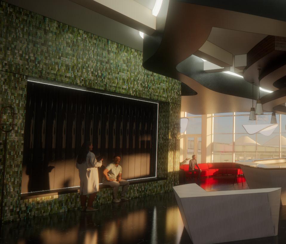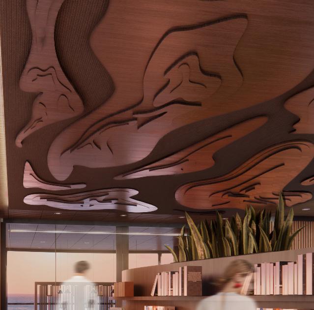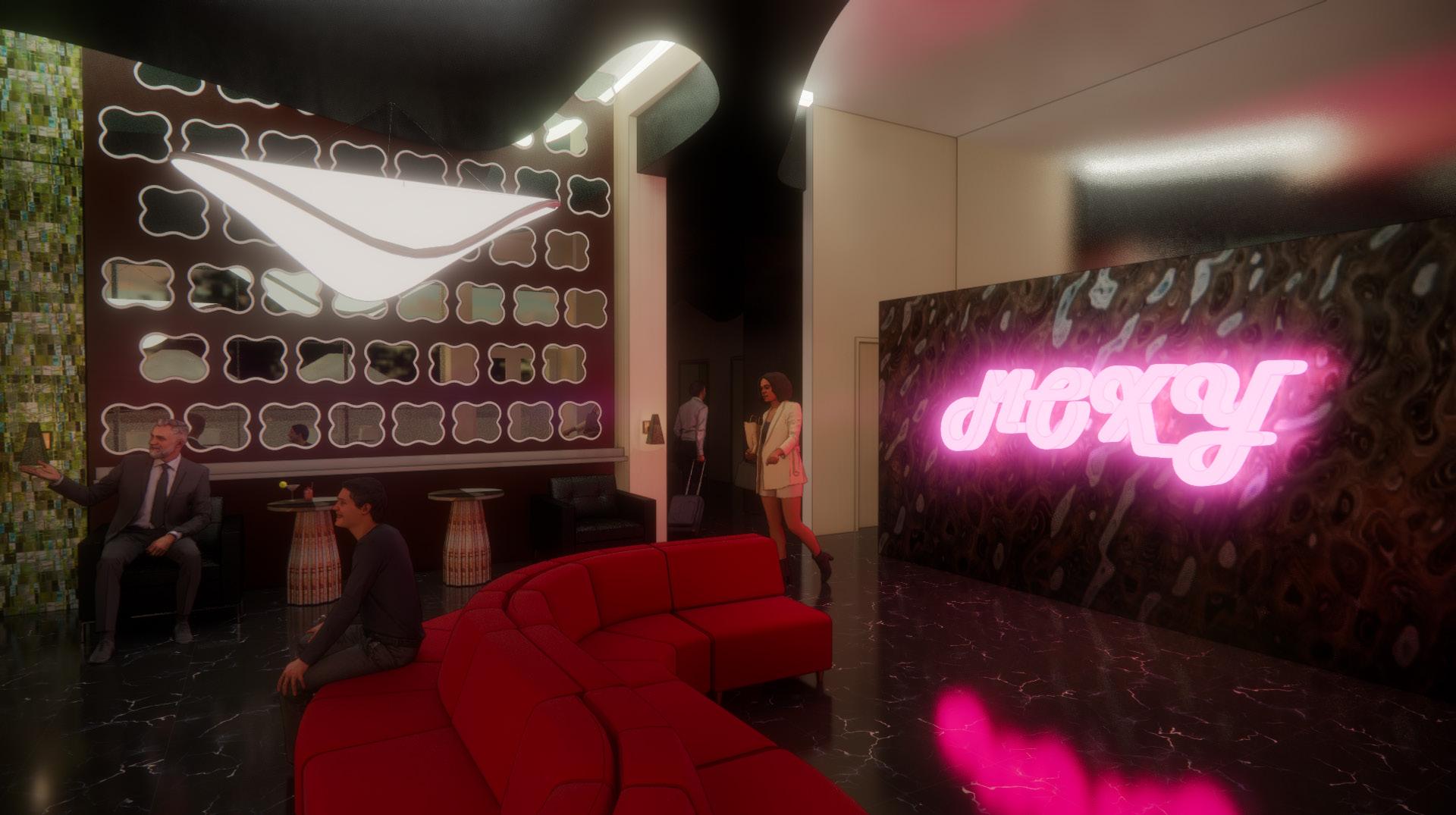 The Moxy hotel brand expresses the cheerfullighthearted lifestyle of the young at heart.The design features organic forms of nature inspired by the different depths throughout the ocean. Implementing its luminous, mystical,and energizing properties to create a space of refreshment and imagination.Through intentional light selections, curvularforms that suggesting movement, and elementsof mystery, the Moxy is its own playground thatwelcomes all. From the ocean’s depth and theVirgina beach’s coastal atmosphere, the visual aspects appeal to the senses throughout the layout,leading to the next destination and adventure.