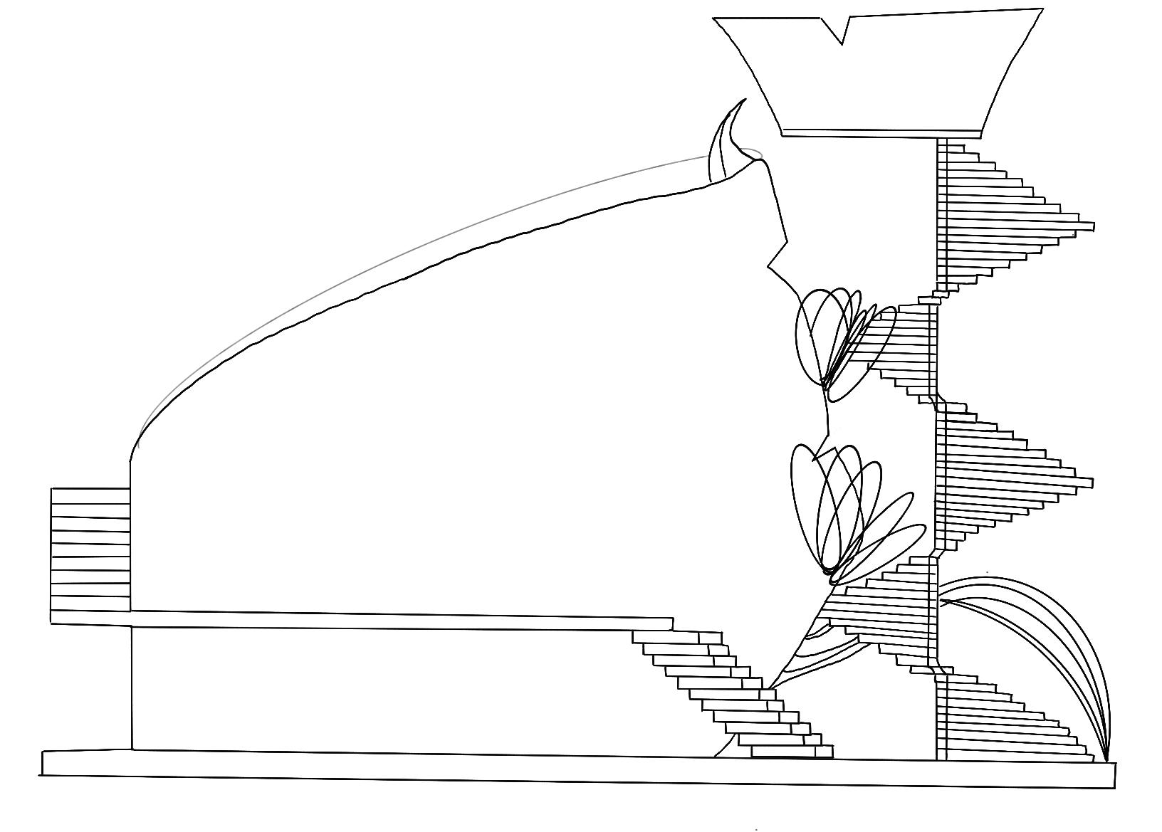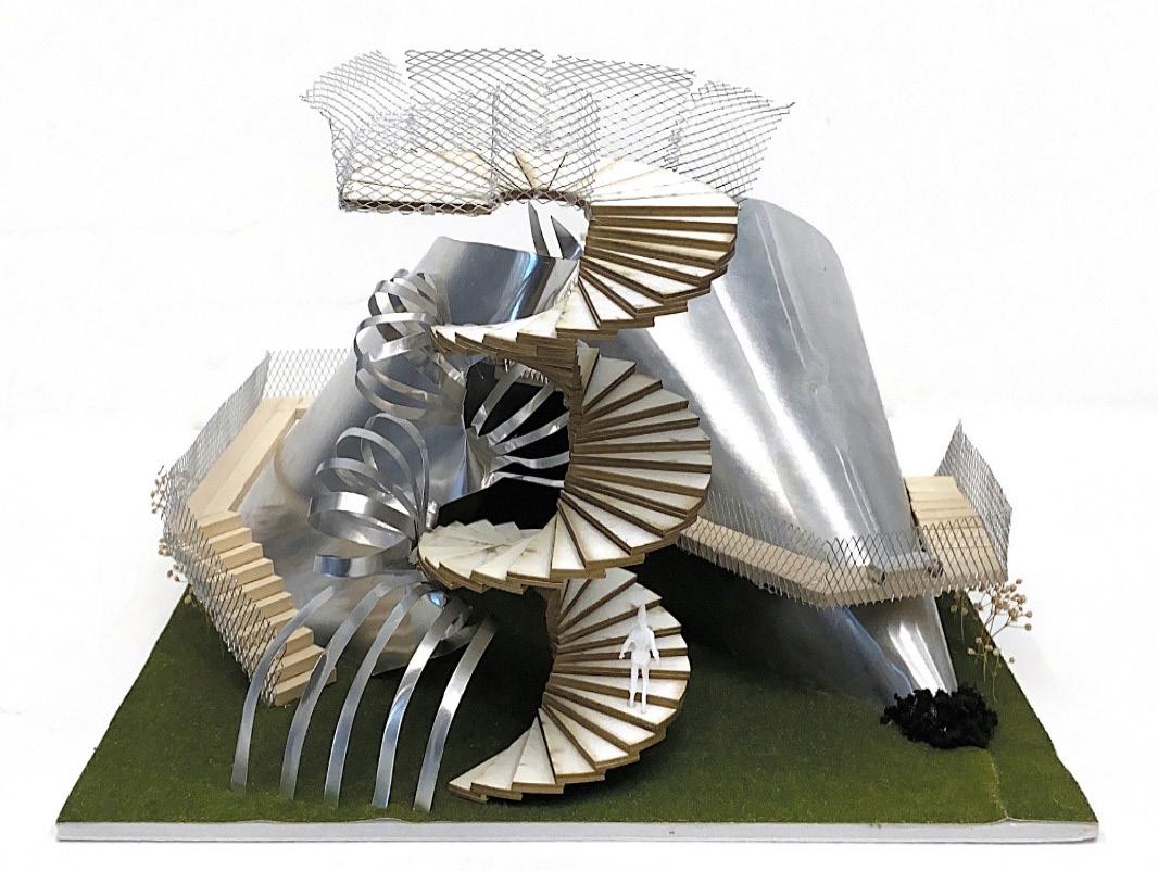 The stair acts as the primary organizing element, with varied platforms marking moments of transition and discovery. A central spiral stair rises to an elevated vantage point, creating a space for pause and retrospection. Through abstract form making and choreographed circulation, the project transforms musical narrative into spatial experience shaped by emotion, memory, and movement.