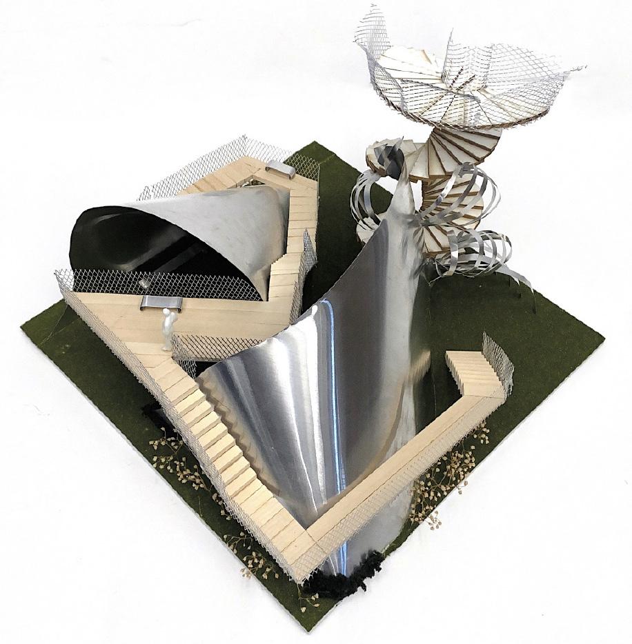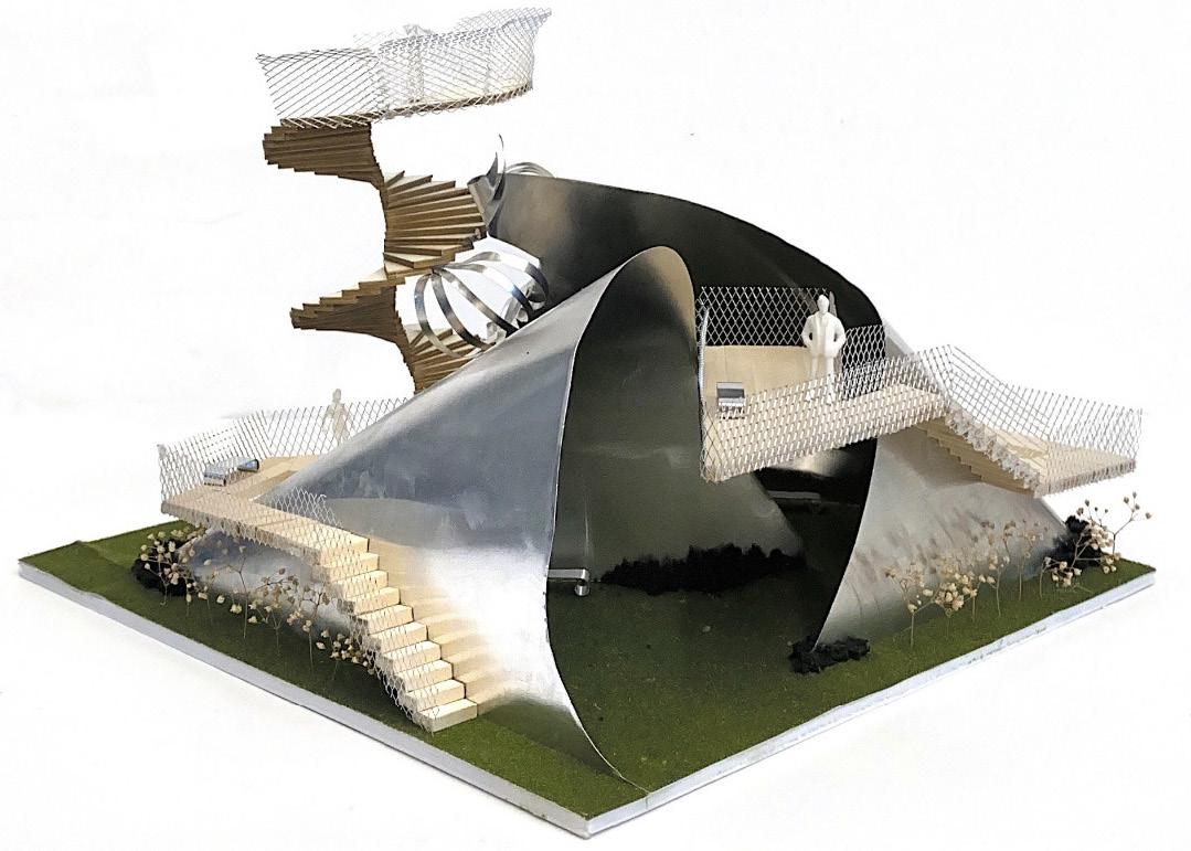 Inspired by To Build a Home by The Cinematic Orchestra, the design investigates the evolving idea of home through an interactive outdoor folly. Two metal domes are connected by an external stair system that guides exploration and reflection.