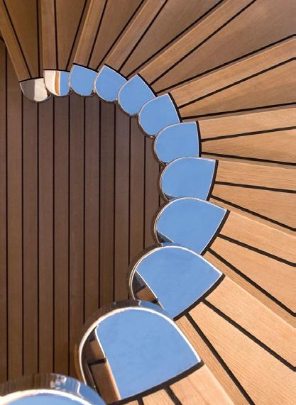 In this key experience, nature is seamlessly integrated into the yacht. Enclosed greenhouses allow guests to grow fresh greens for their meals, enhancing their connection to natural ingredients. Beyond their aesthetic appeal, these spaces also house a serene butterfly garden, offering a multi-sensory experience. This tranquil environment provides a grounding escape for guests who may be feeling seasick, helping them reconnect with the land through sight, scent, and touch.